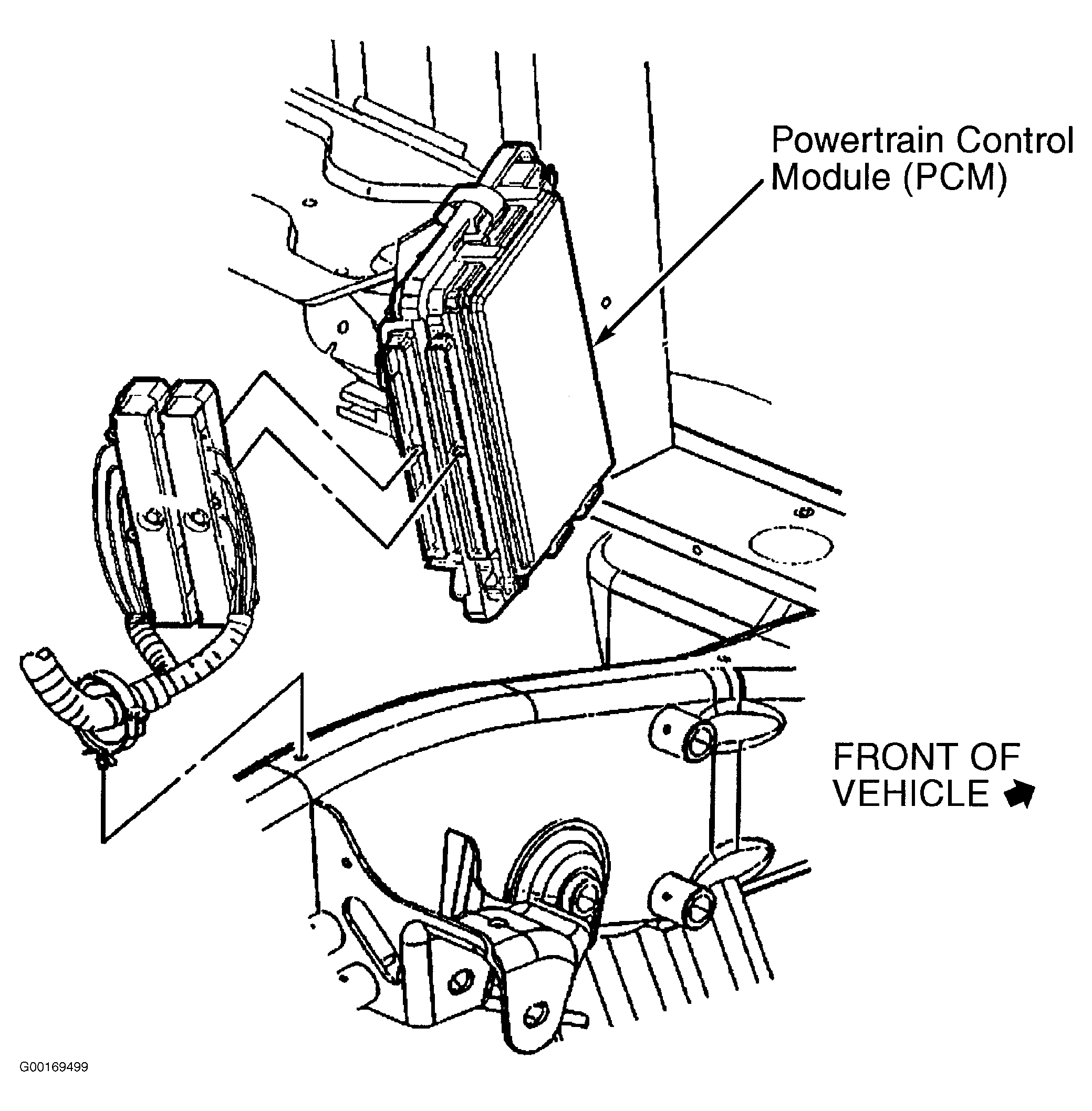 The PCM has a "learning" ability which allows it to make minor corrections for fuel system variations. PCM is located on left front of engine compartment, behind radiator. See Fig 1. If battery power is interrupted, a vehicle performance change may be noticed. PCM module corrects itself, and normal performance returns if vehicle is allowed to "relearn" optimum control conditions. "Relearning" occurs when vehicle is driven at normal operating temperature under part throttle, moderate acceleration and idle conditions.