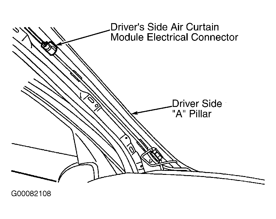 - If vehicle is equipped with side air curtain modules, remove "A" pillar trim panel. Disconnect driver's side air curtain module electrical connector. See Fig 1. Connect appropriate air bag simulator to vehicle harness of the driver's side air curtain module electrical connector. See AIR BAG SIMULATOR . Repeat procedure for passenger's side air curtain module.