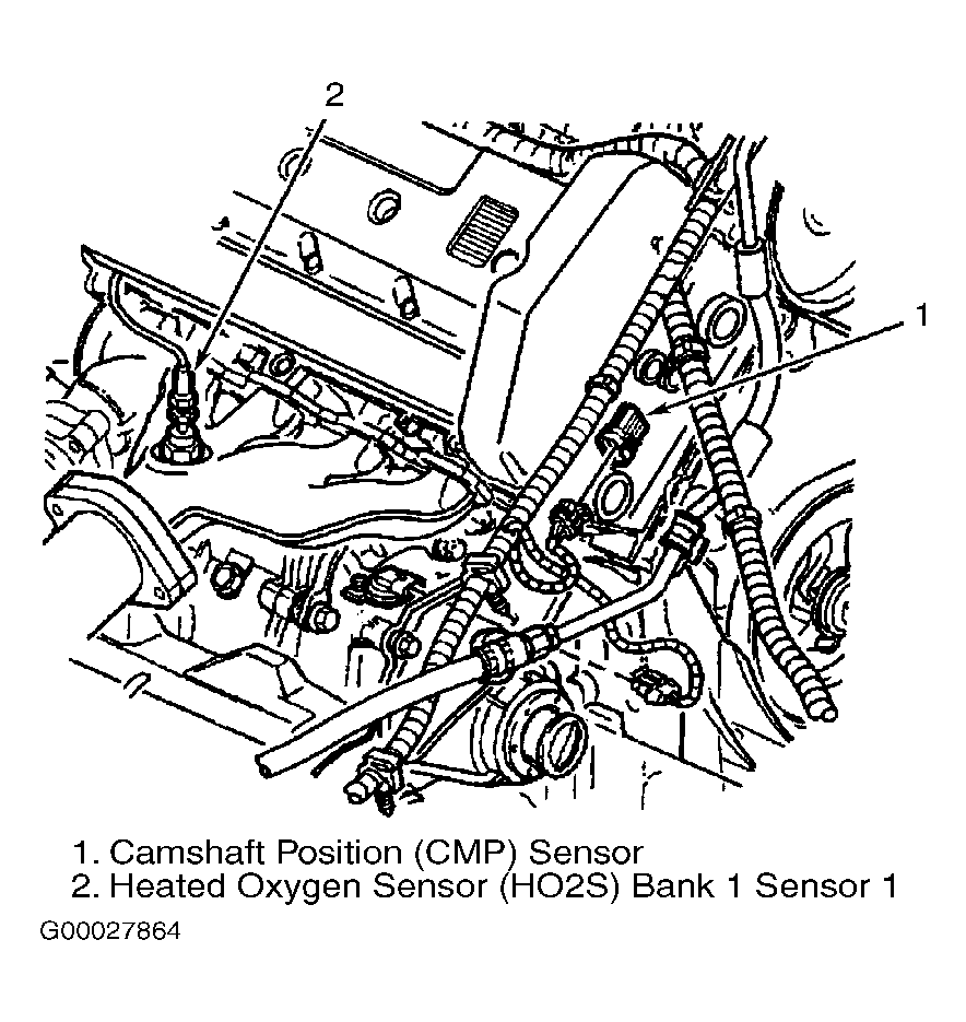 Fig 1: Locating Camshaft Position Sensor & HO2S Bank 1, Sensor 1