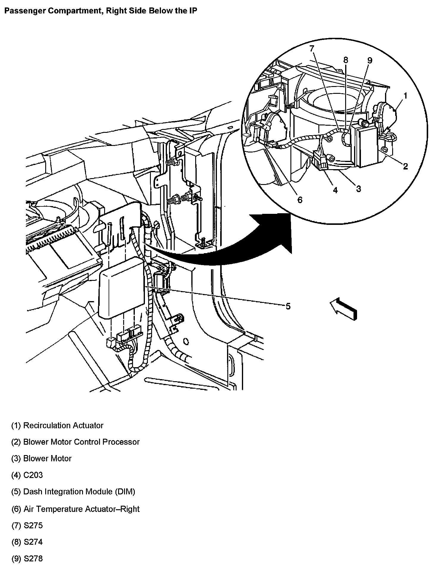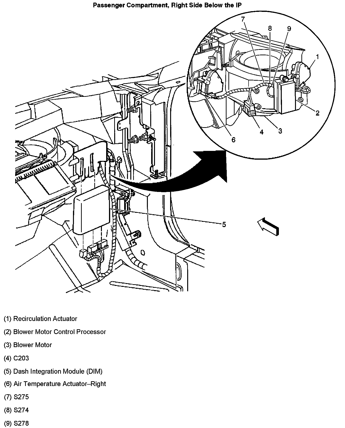 Passenger Compartment Right Side Below The IP: