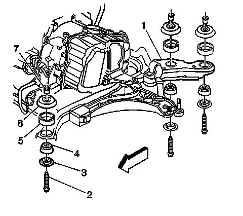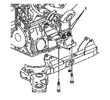 7. Install the fasteners in order to retain the rear transaxle mount (1) to the bracket.