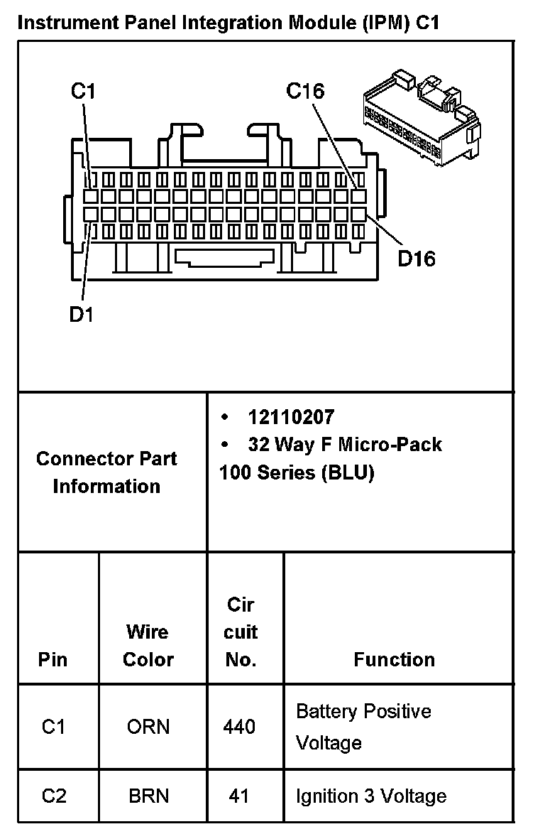 Instrument Panel Integration Module (IPM) C1 Part 3: