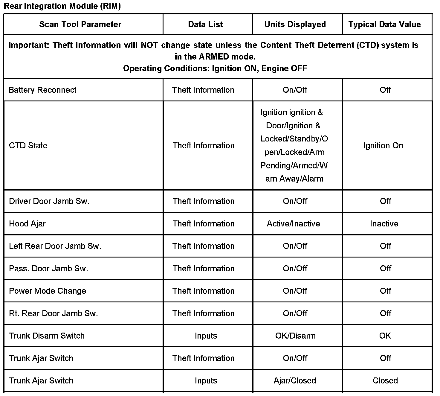 Scan Tool Data List - Antitheft System