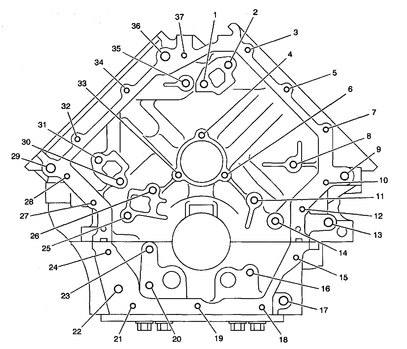 Tighten the lower crankcase bolts (1 through 20) an additional 65 degrees in the proper sequence using the J 36660-A.