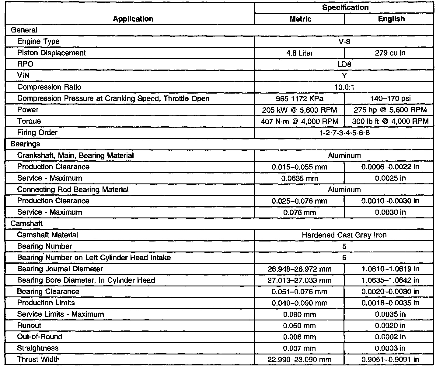 Engine Mechanical Specifications