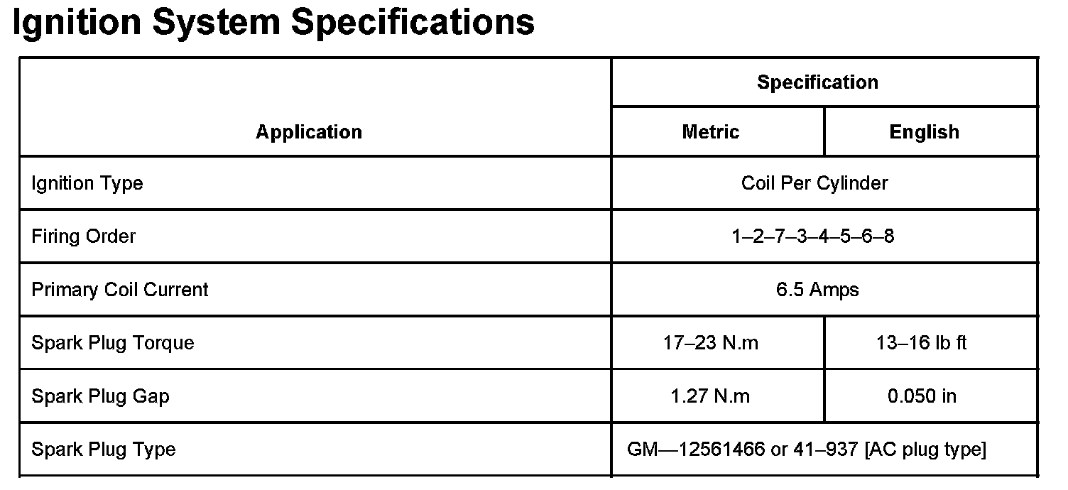 Ignition System Specifications (K~Body (Seville) 4.6L):