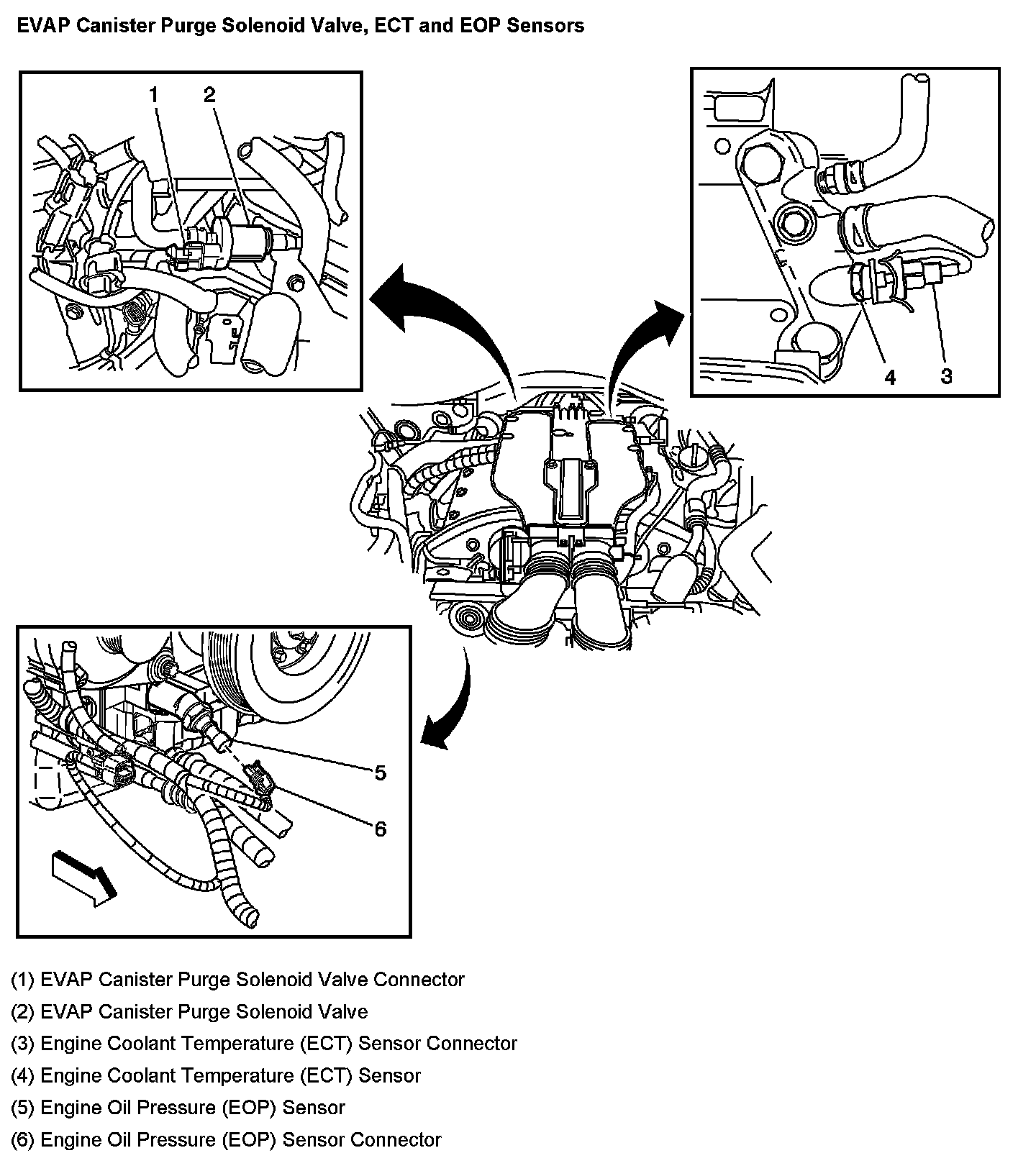 EVAP Canister Purge Solenoid Valve, ECT and EOP Sensors: