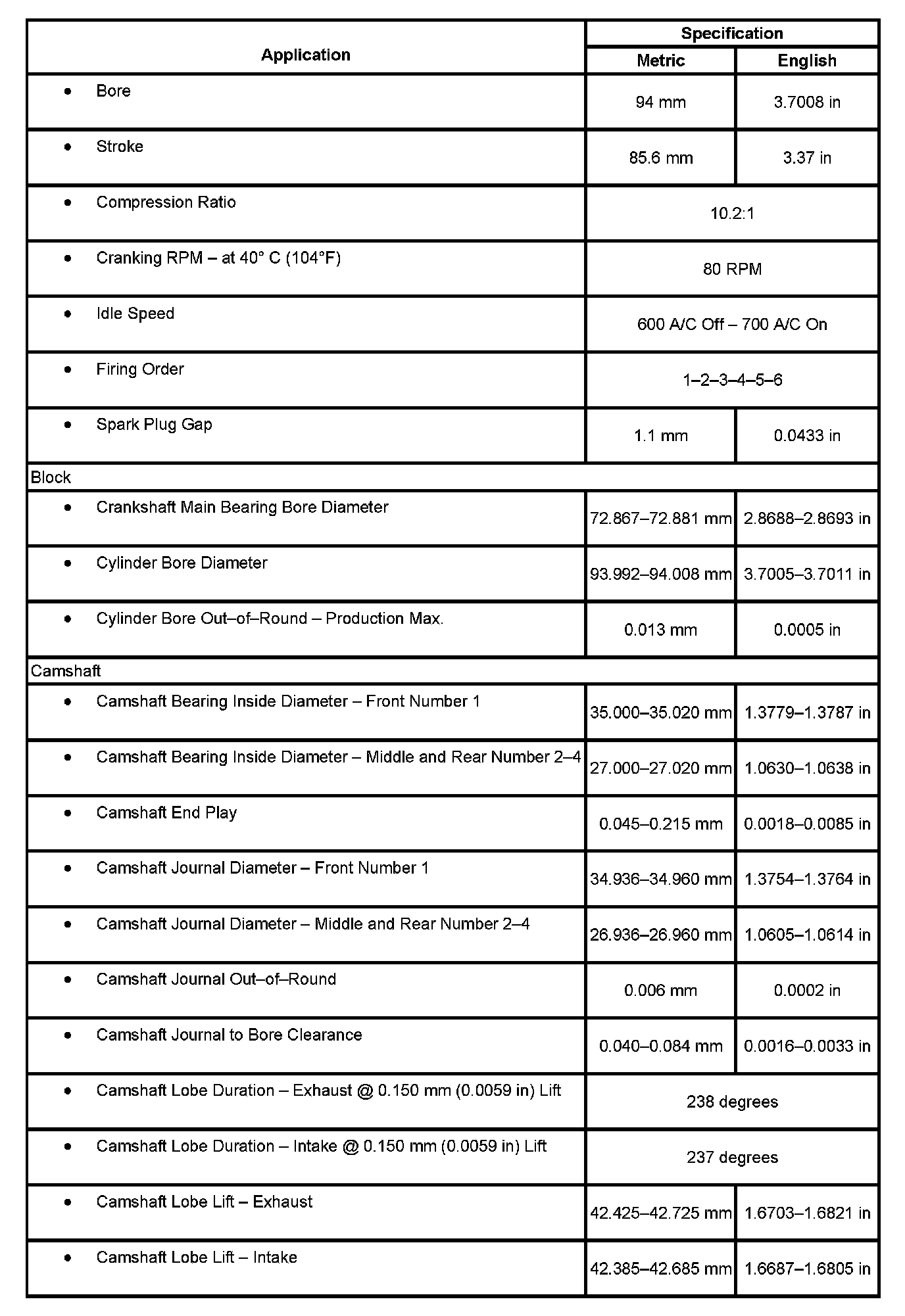 Engine Mechanical Specifications, Part 6: