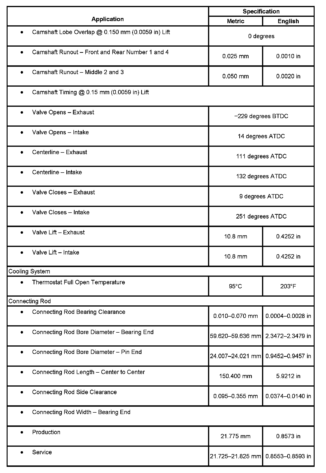 Engine Mechanical Specifications, Part 7: