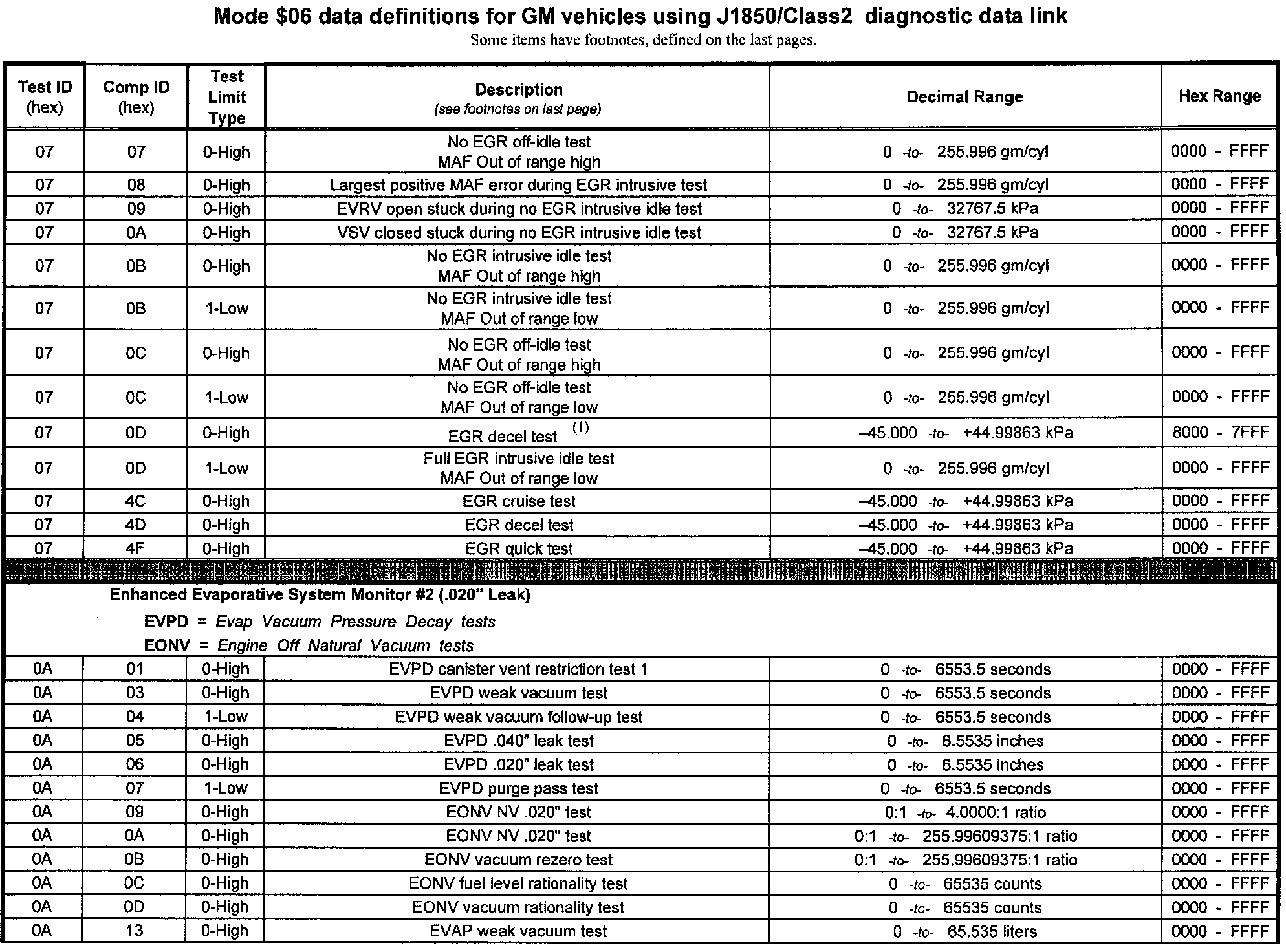 Mode 6 Data Vehicles With Class 2 Diagnostic Data Link