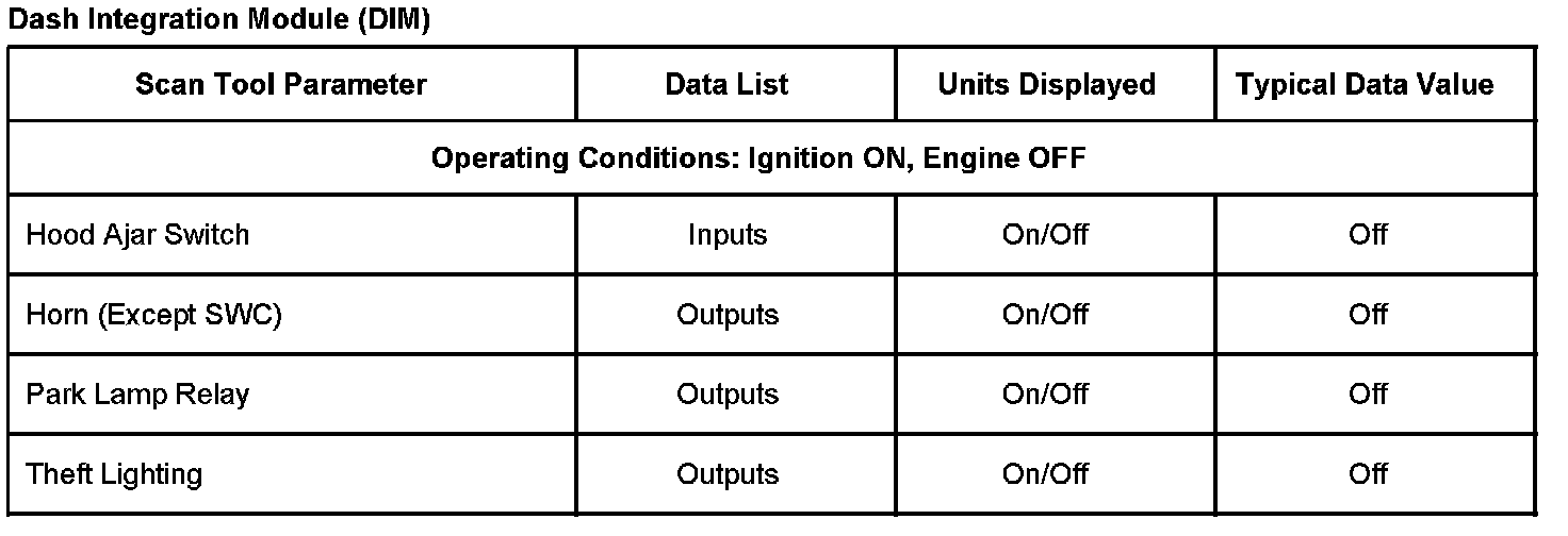 Scan Tool Data List - Antitheft System