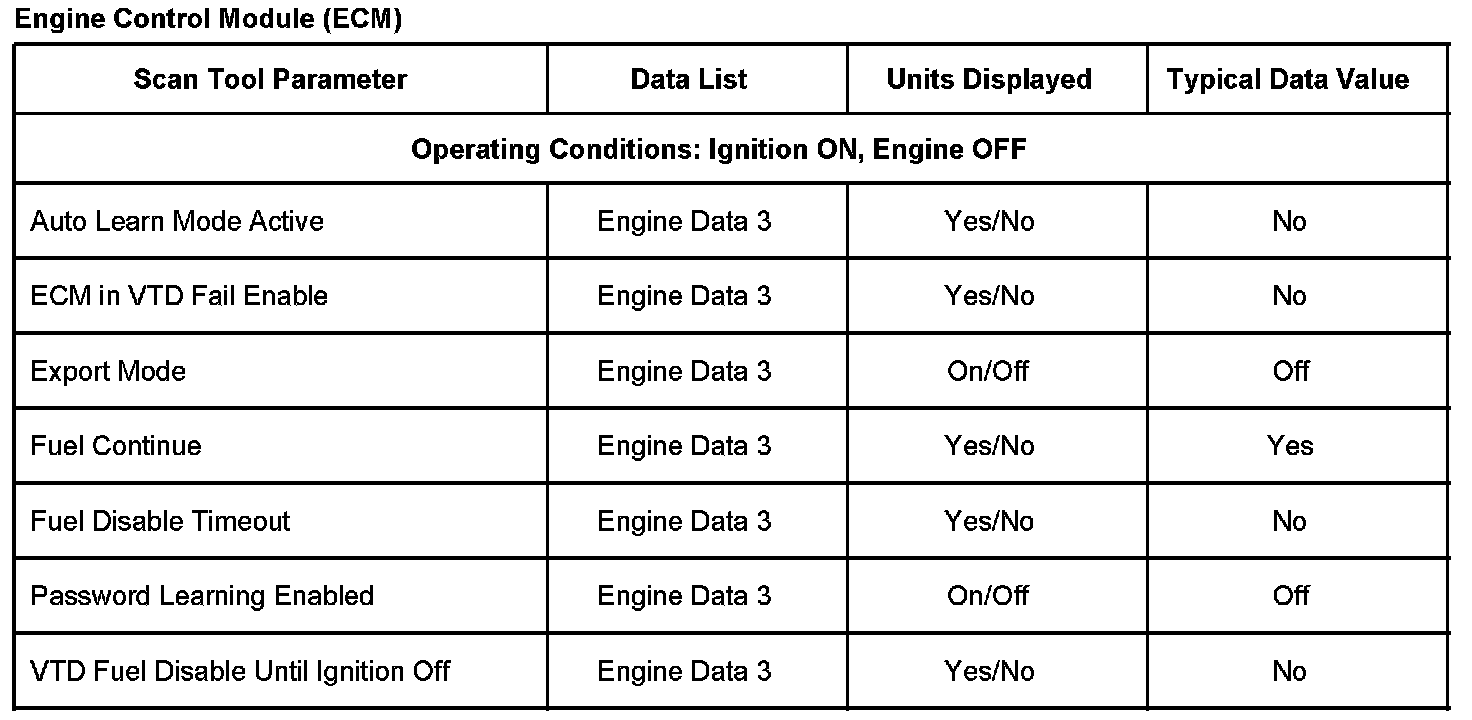 Scan Tool Data List - Antitheft System