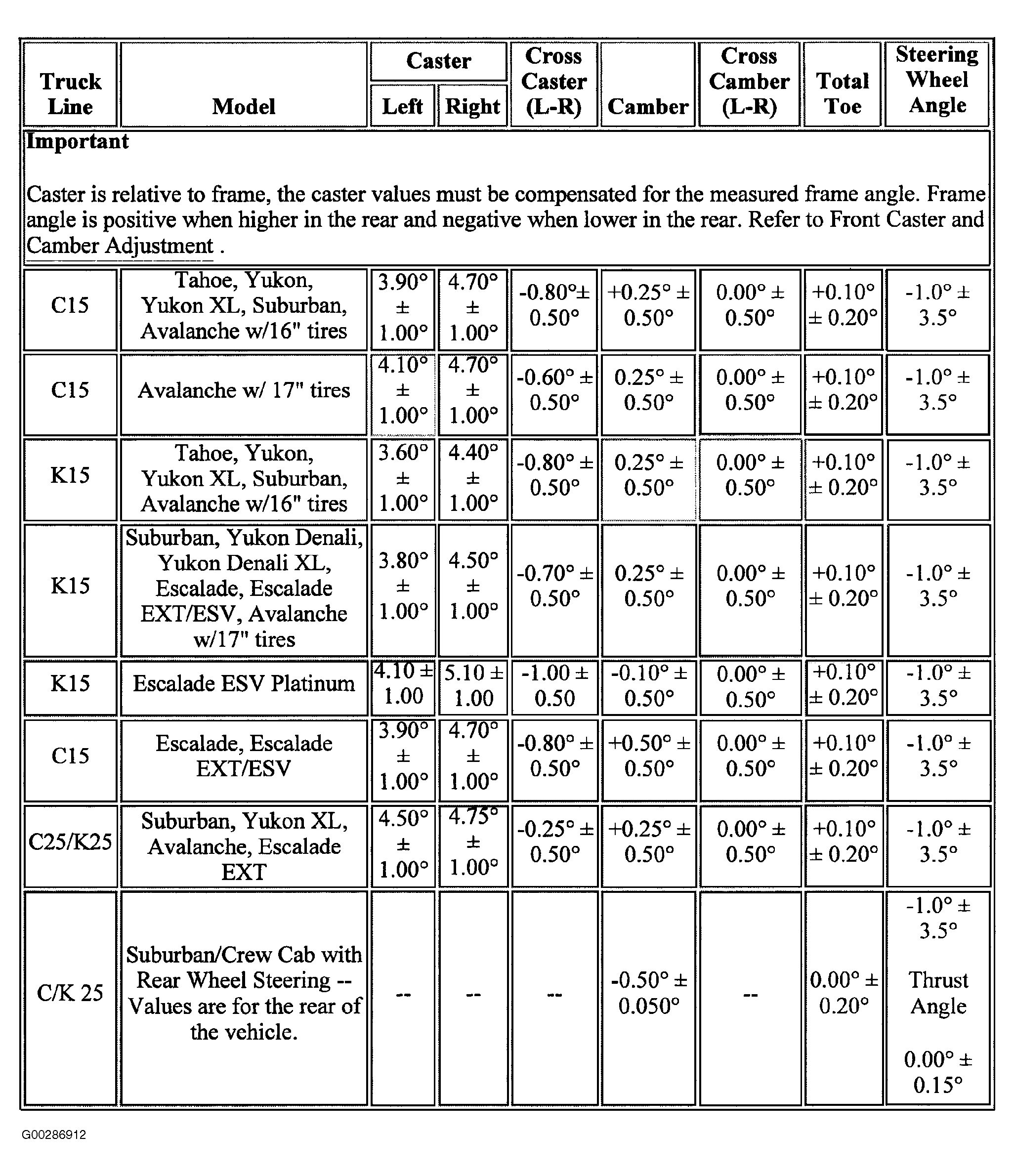 Wheel Alignment Specifications