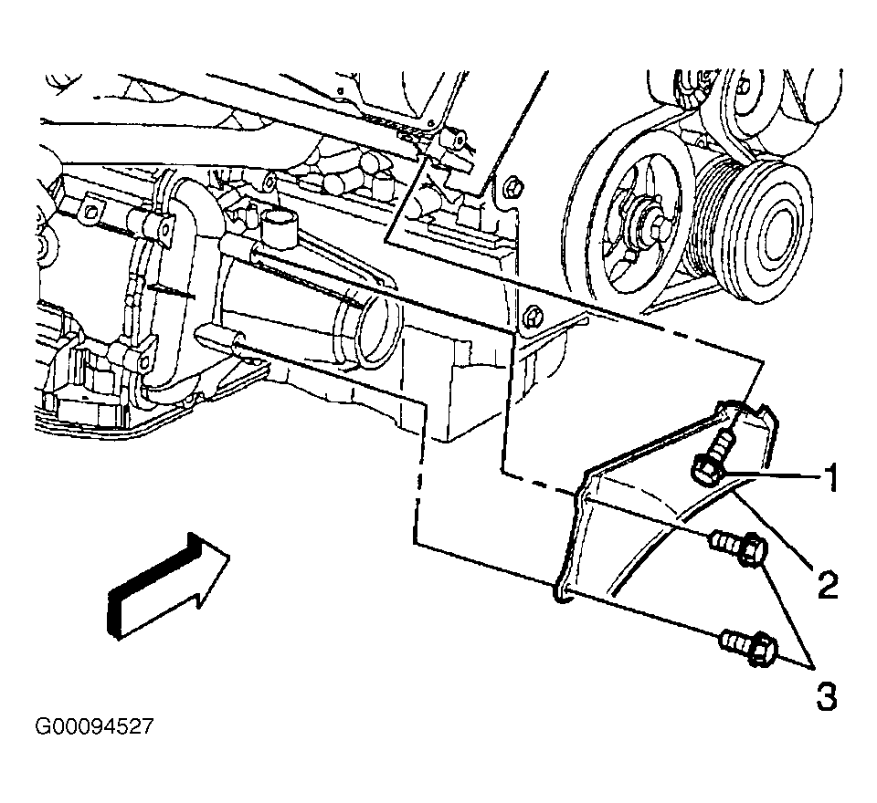 Install the vehicle speed sensor (130) and the retaining bolt (131). See Figure . Install a new O-ring seal on sensor if necessary. Tighten the bolt to specification. See TORQUE SPECIFICATIONS . Install the electrical connector at the sensor. Install the bolts (1 and 3) securing the front transaxle brace (2) to the transaxle and right cylinder head. See Figure . Lower the vehicle.
