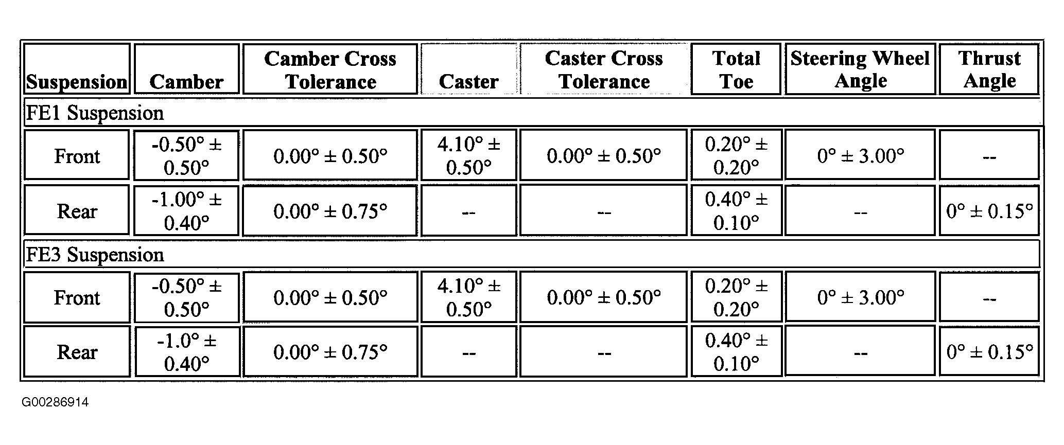 Wheel Alignment Specifications: Specifications