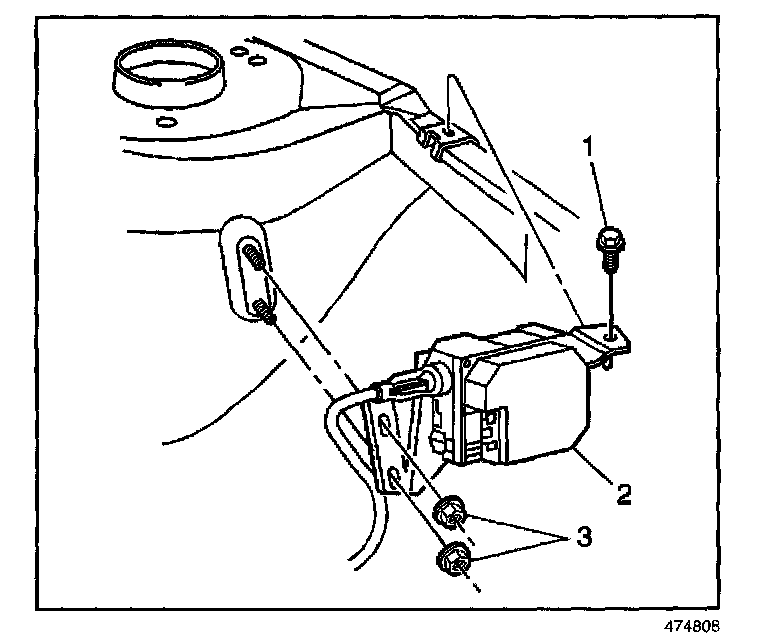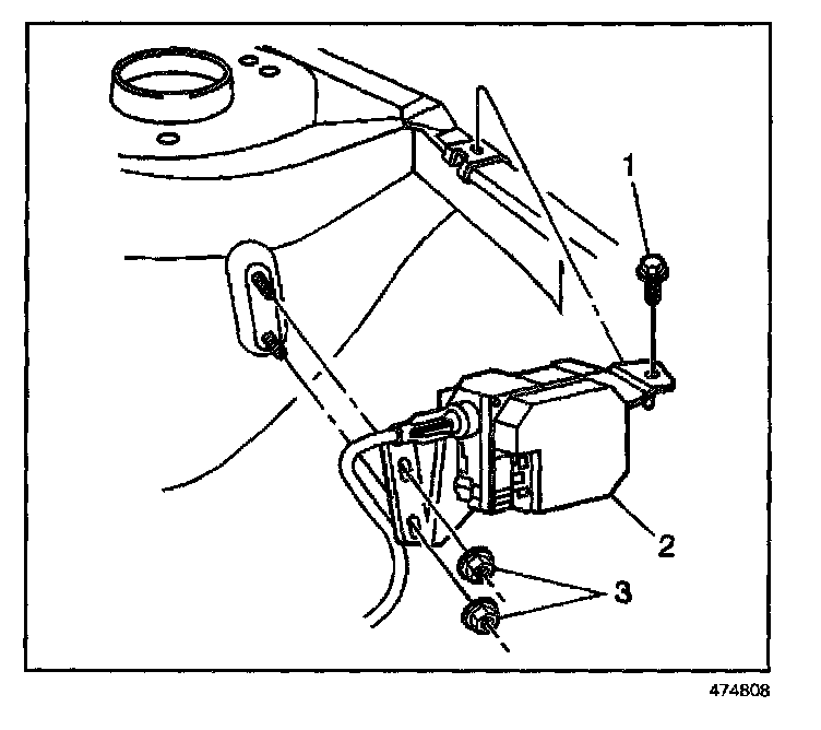 3. Remove the nuts (3) and the bolt (1) from the cruise control module assembly (2).
