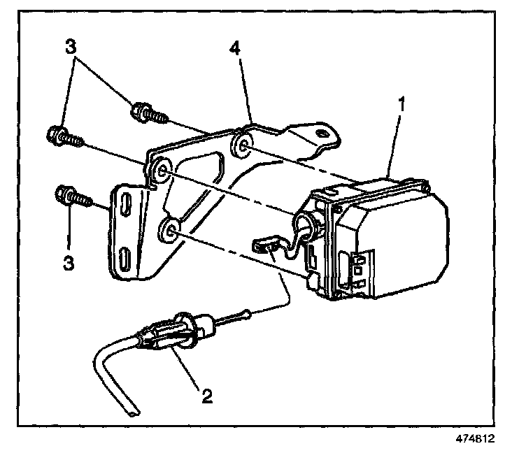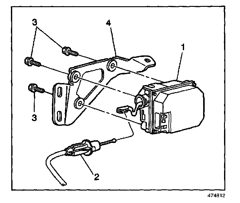 1. Install the cruise control module (1) on the mounting bracket (4).