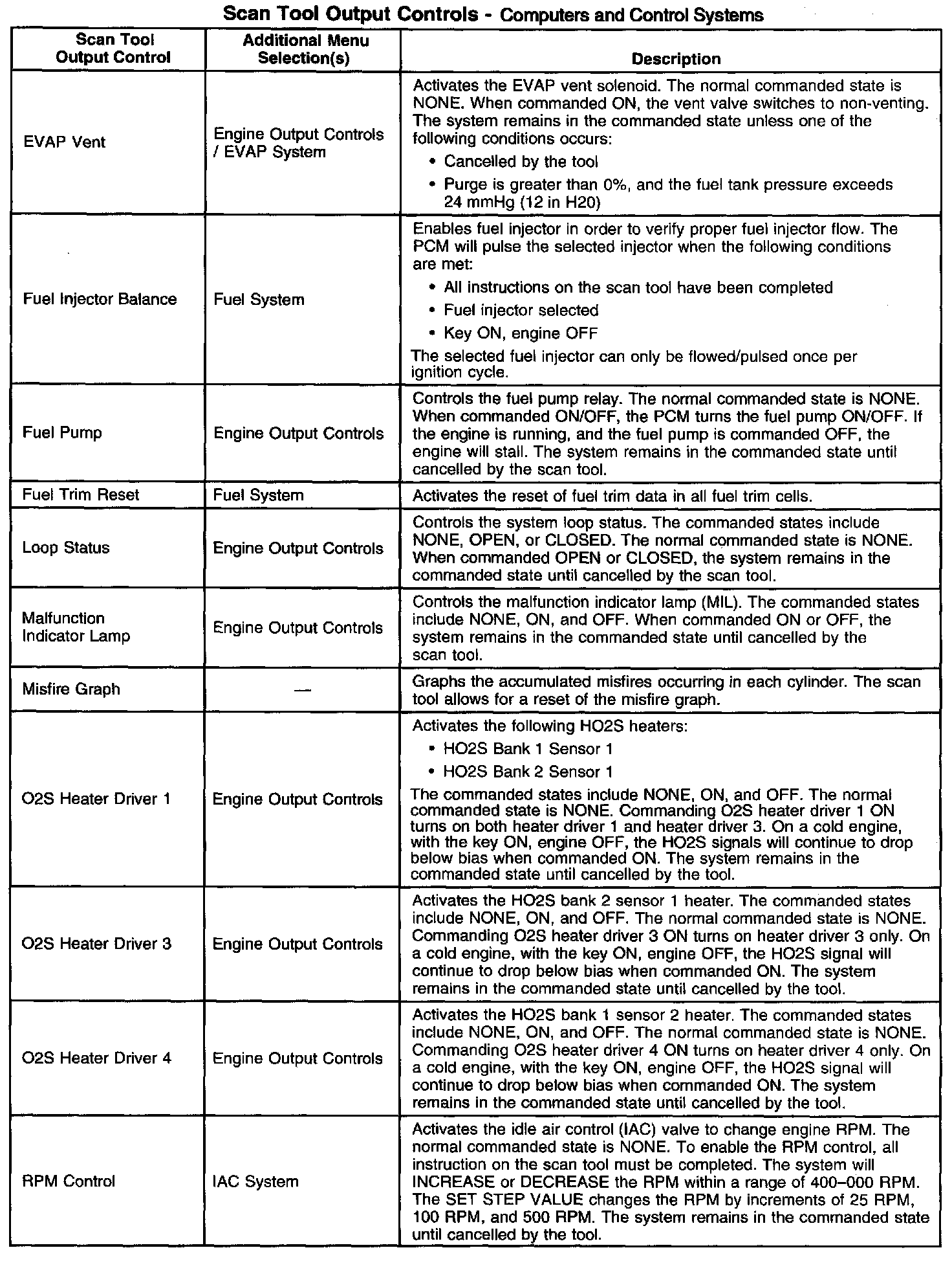 Scan Tool Output Controls