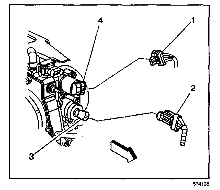 1. Remove the idle air control (IAC) electrical connector (1) from the IAC sensor (4).