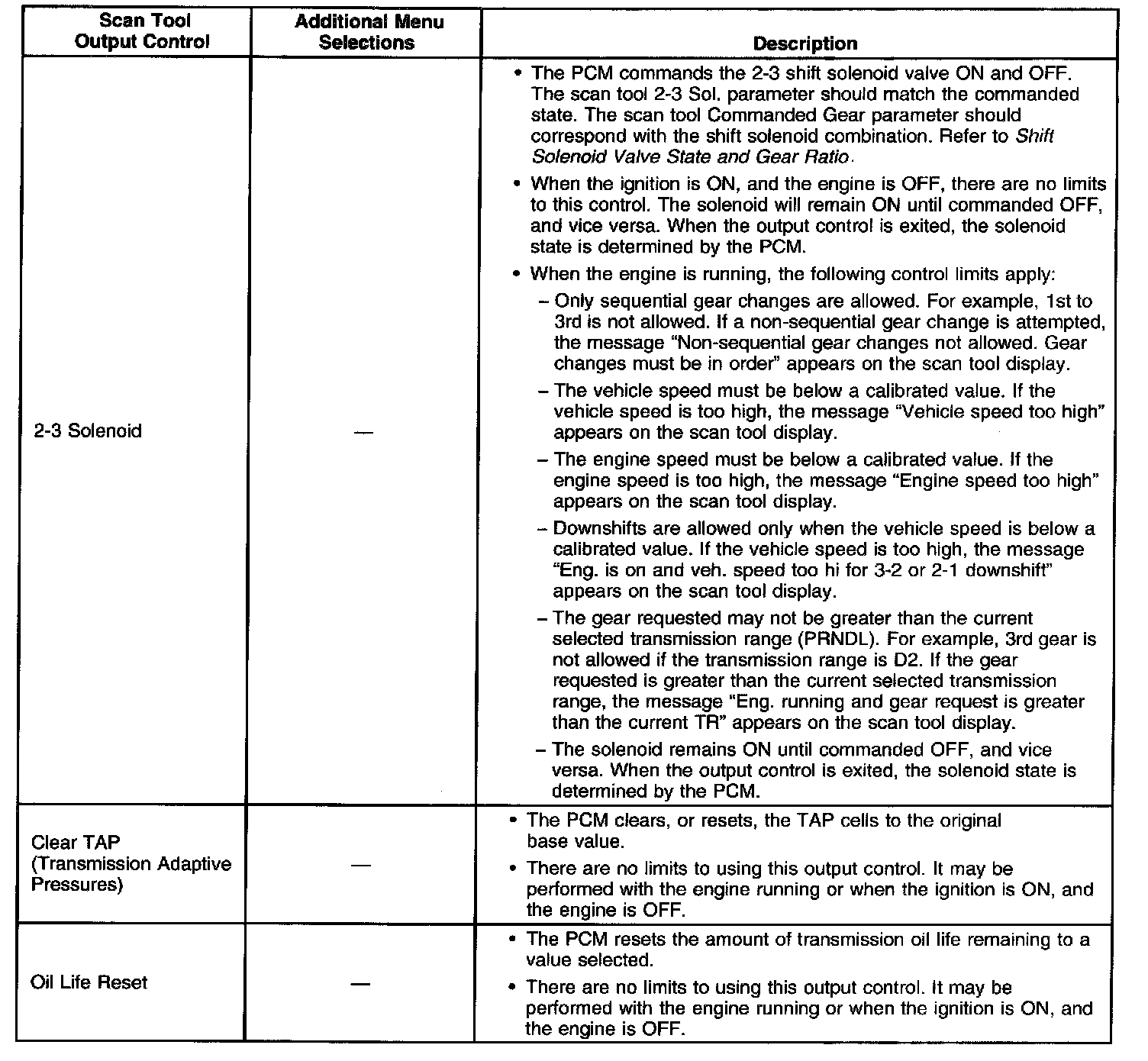 Scan Tool Output Controls