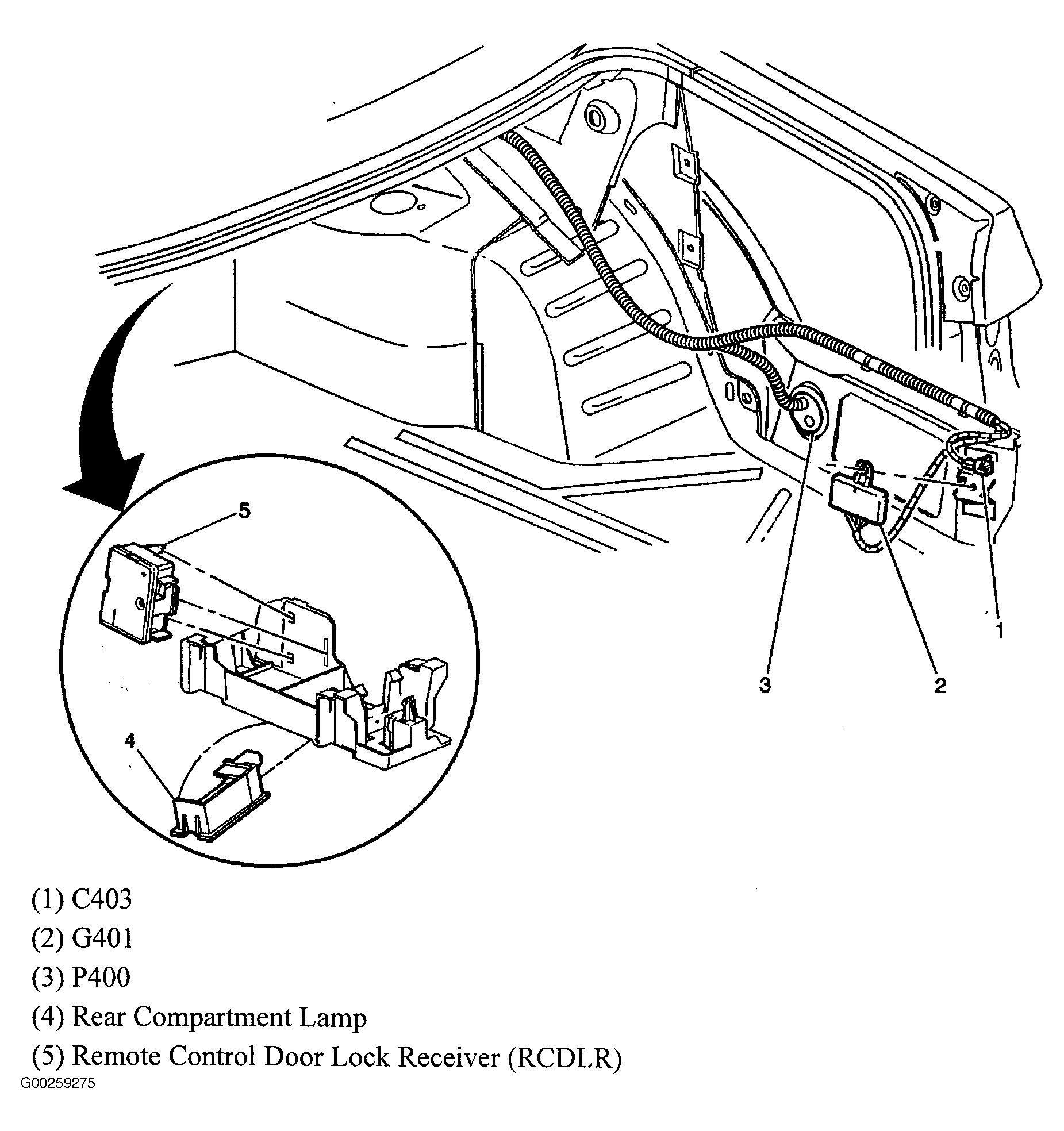 | Remote Control Door Lock Receiver | Under rear speaker shelf. See Figure . |