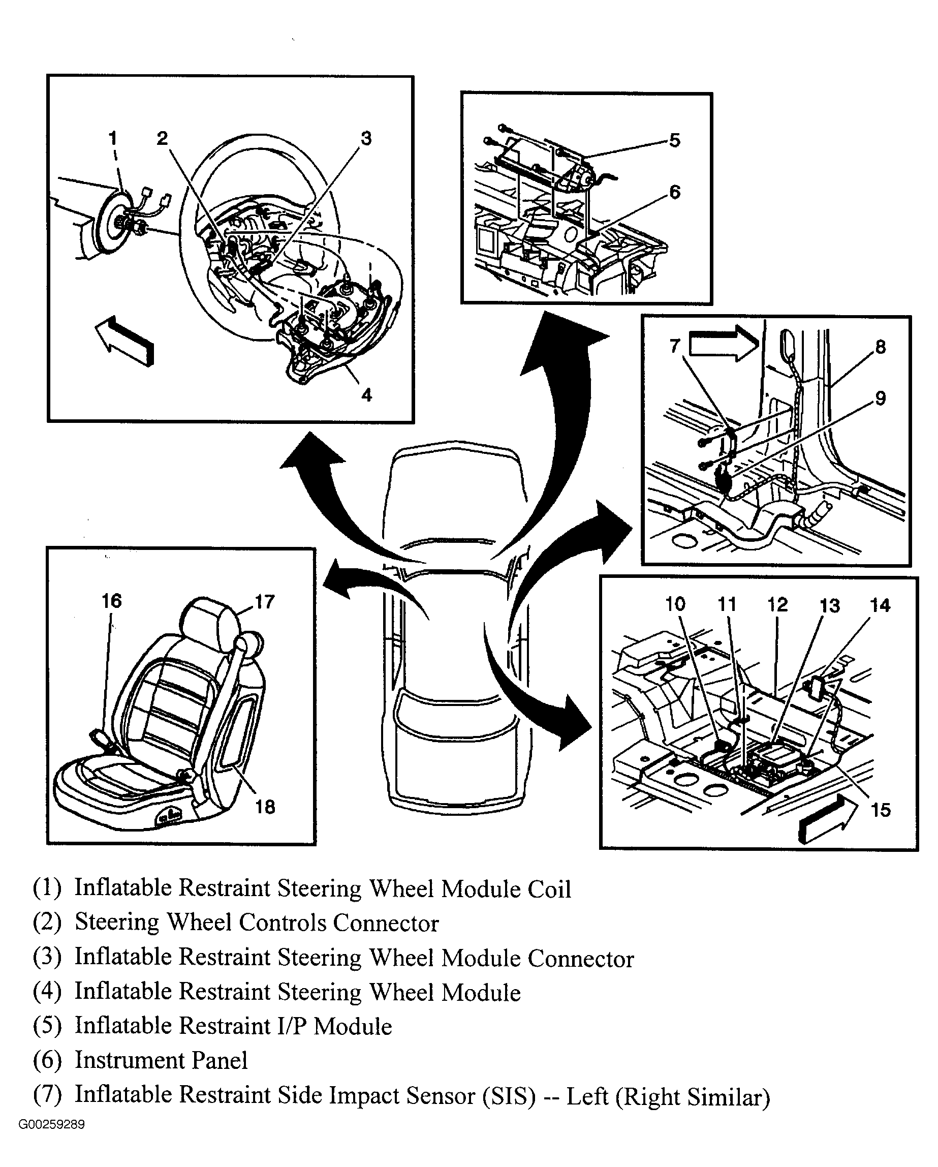 | Inflatable Restraint Steering Wheel Module Coil | Top of steering column. See Figure . |