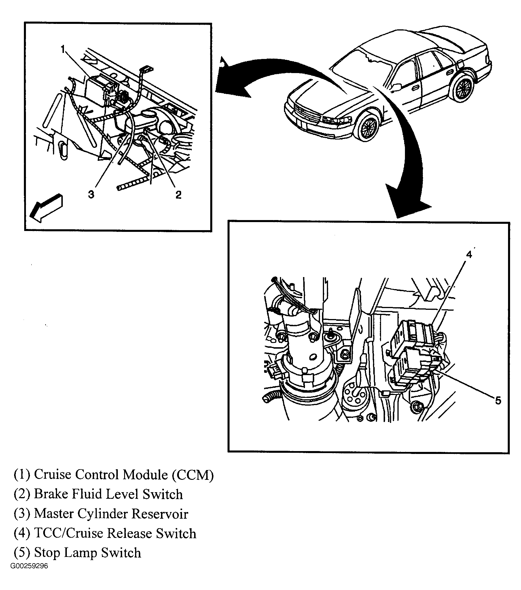 | Cruise Control Module (CCM) | On center rear of engine compartment, near power brake booster. See Figure . |