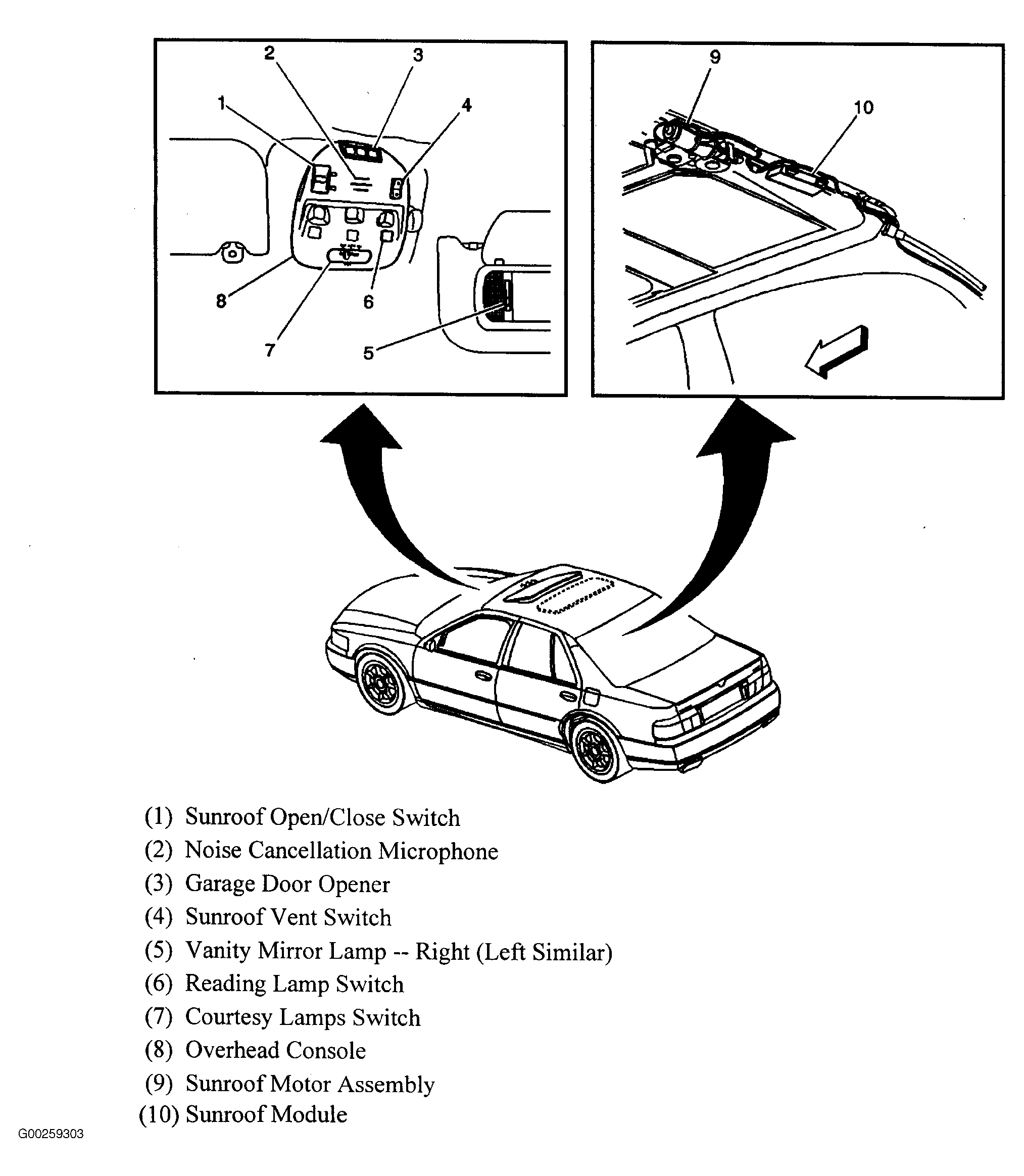 | Sunroof Module | Above headliner, near rear of sun roof. See Figure . |