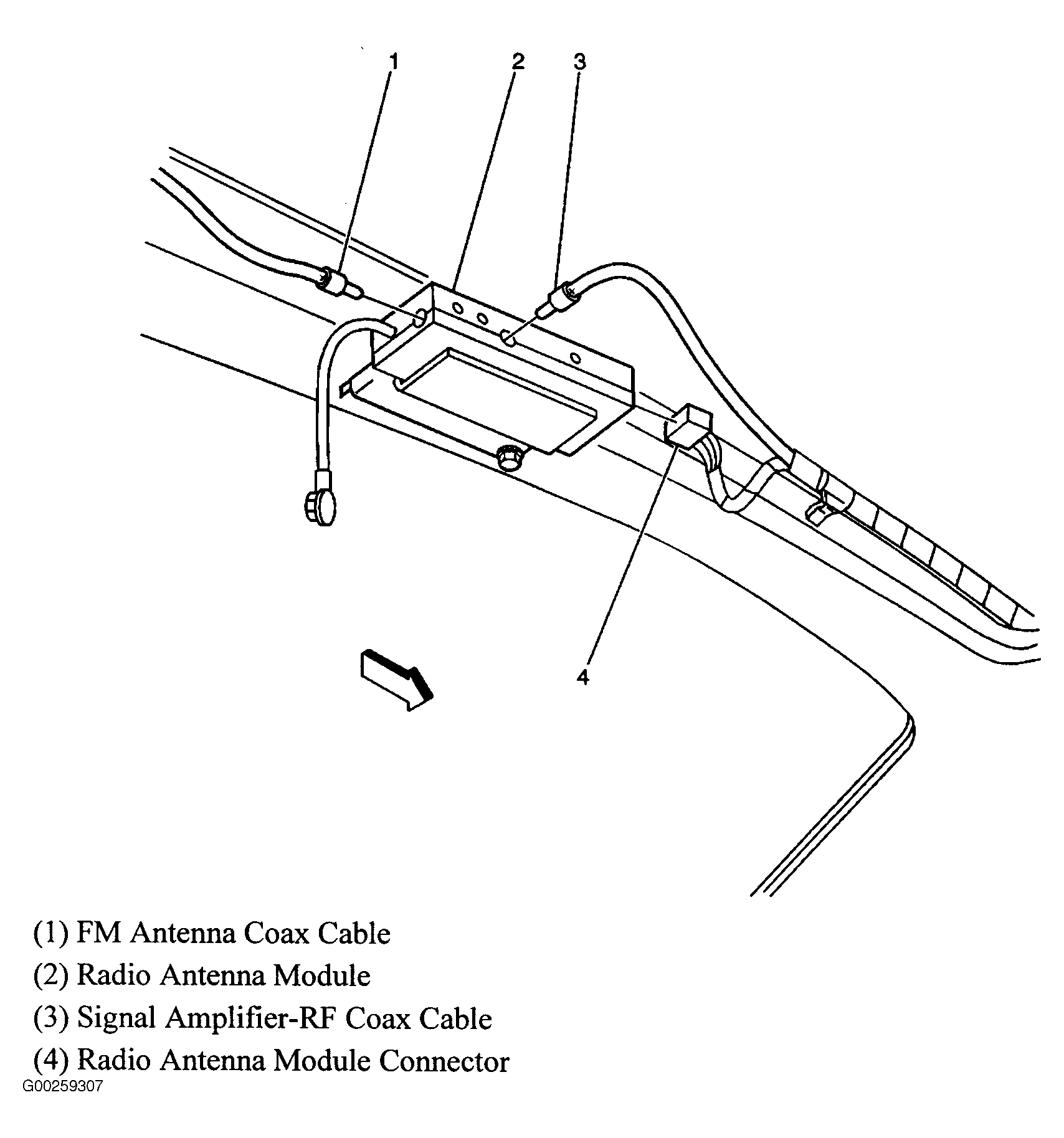 | Radio Antenna Module Connector | Above center rear of headliner. See Figure . |