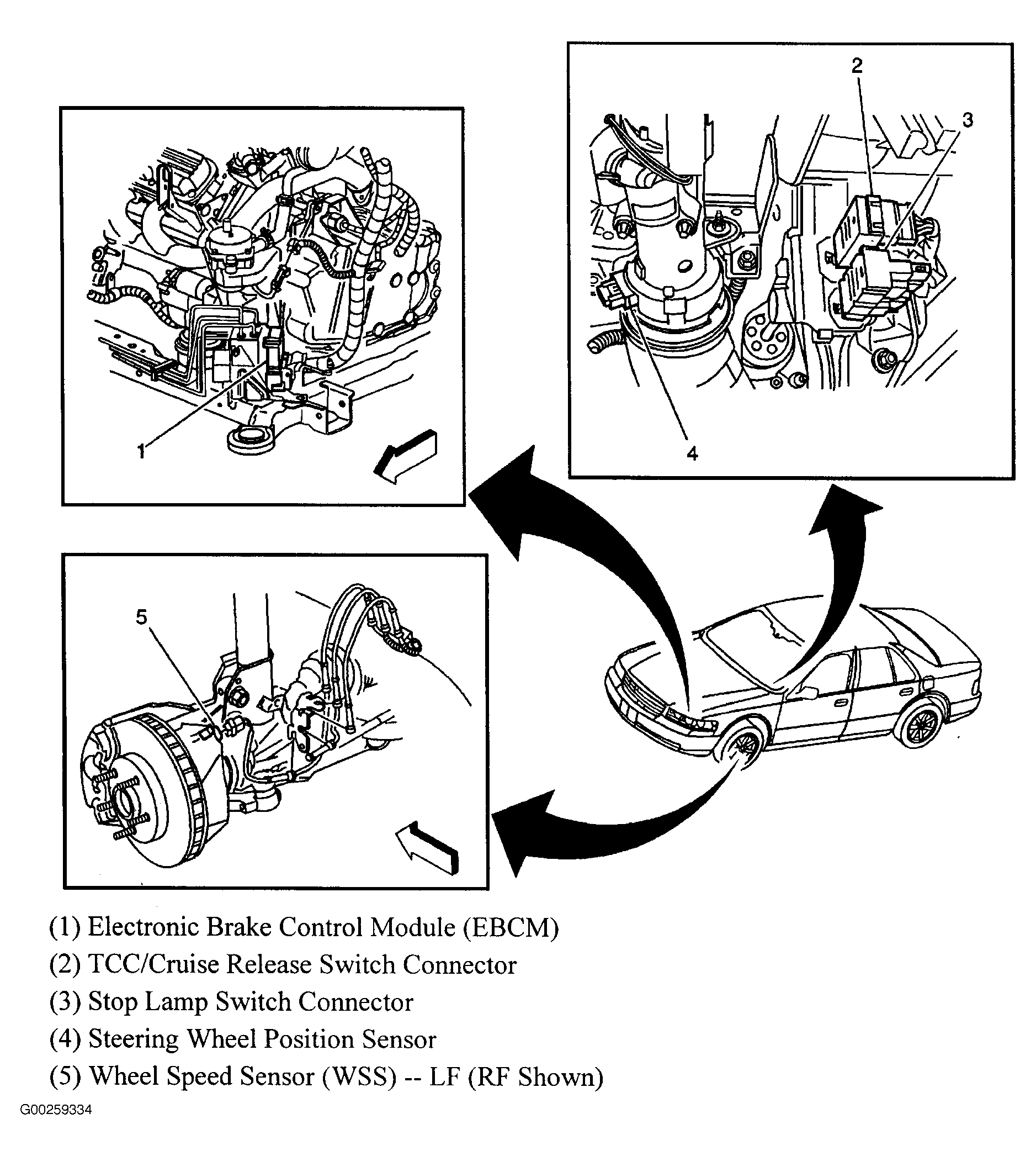 | Electronic Brake Control Module (EBCM) | On left front corner of engine compartment, below air cleaner housing. See Figure . |