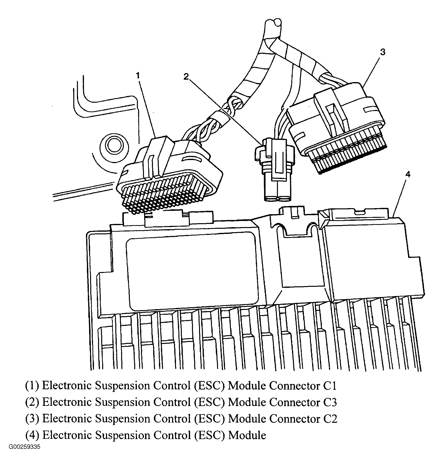| Electronic Suspension Control (ESC) Module | Behind right side of rear seat. See Figure . |