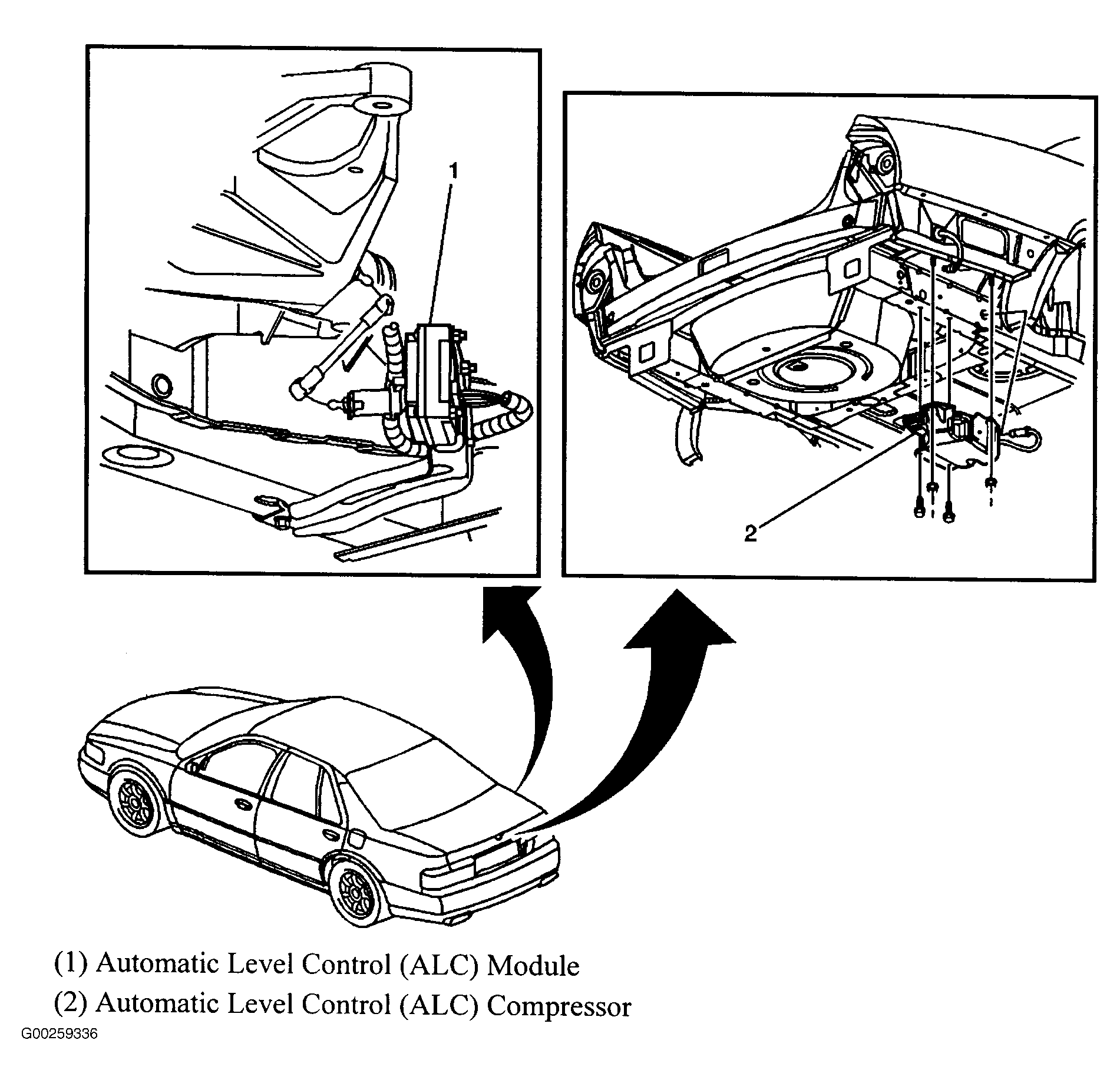 | Automatic Level Control (ALC) Module | Under rear of vehicle, near rear suspension carrier. See Figure . |