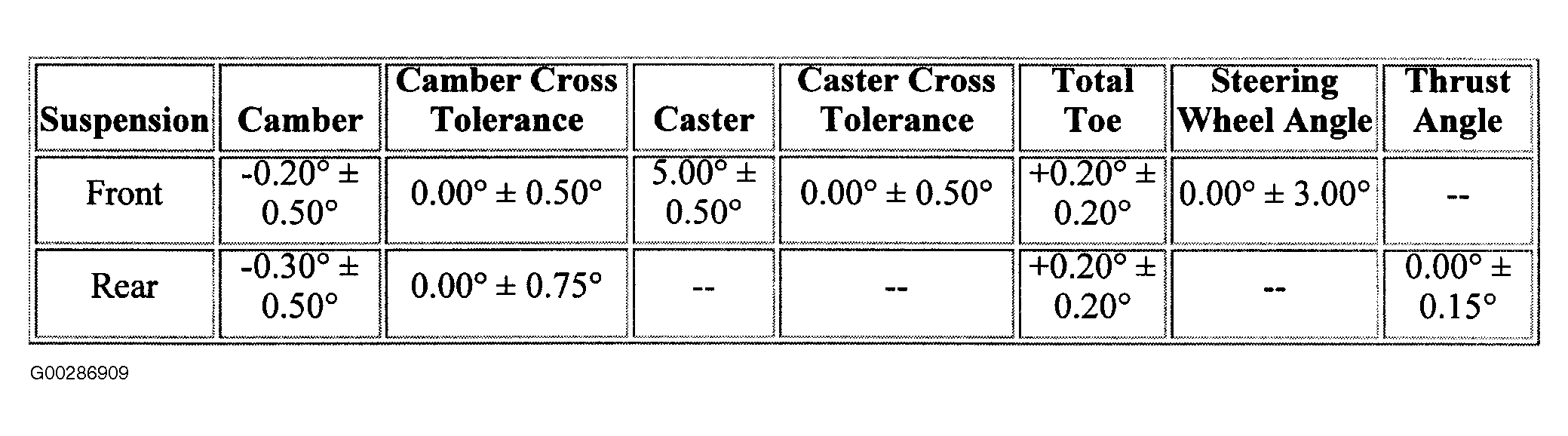 Wheel Alignment Specifications