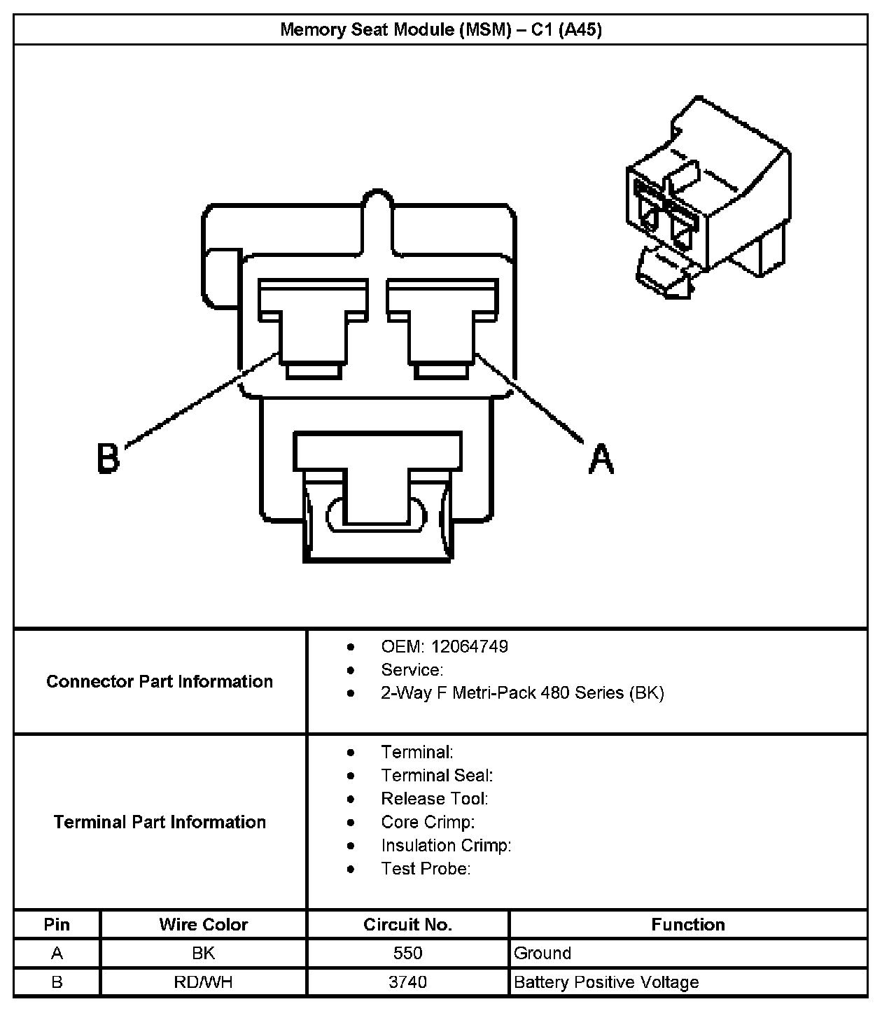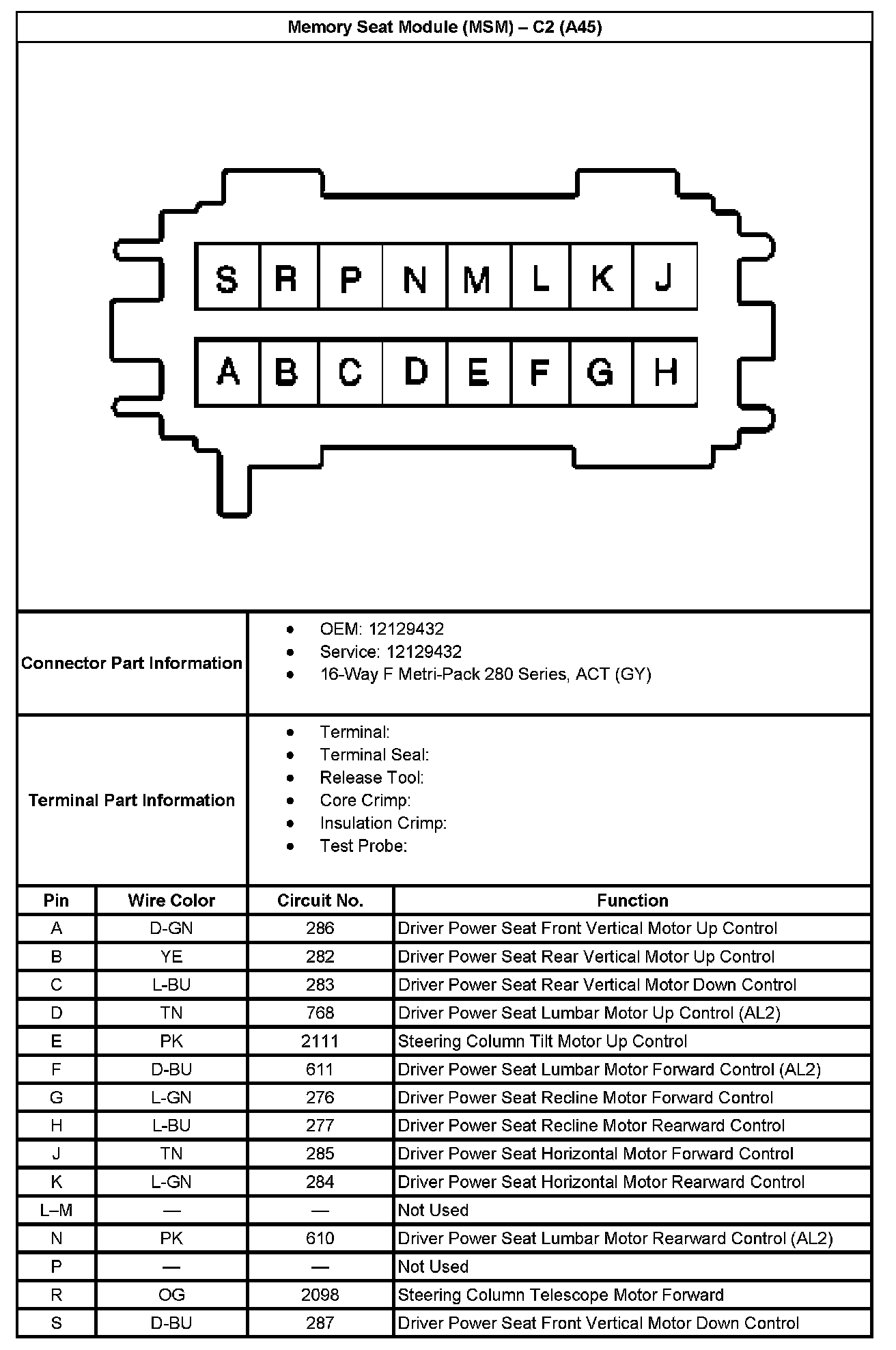 Memory Seat Module (MSM) - C2 (With RPO Code A45):