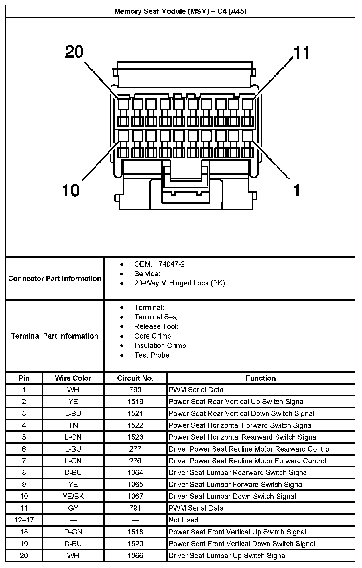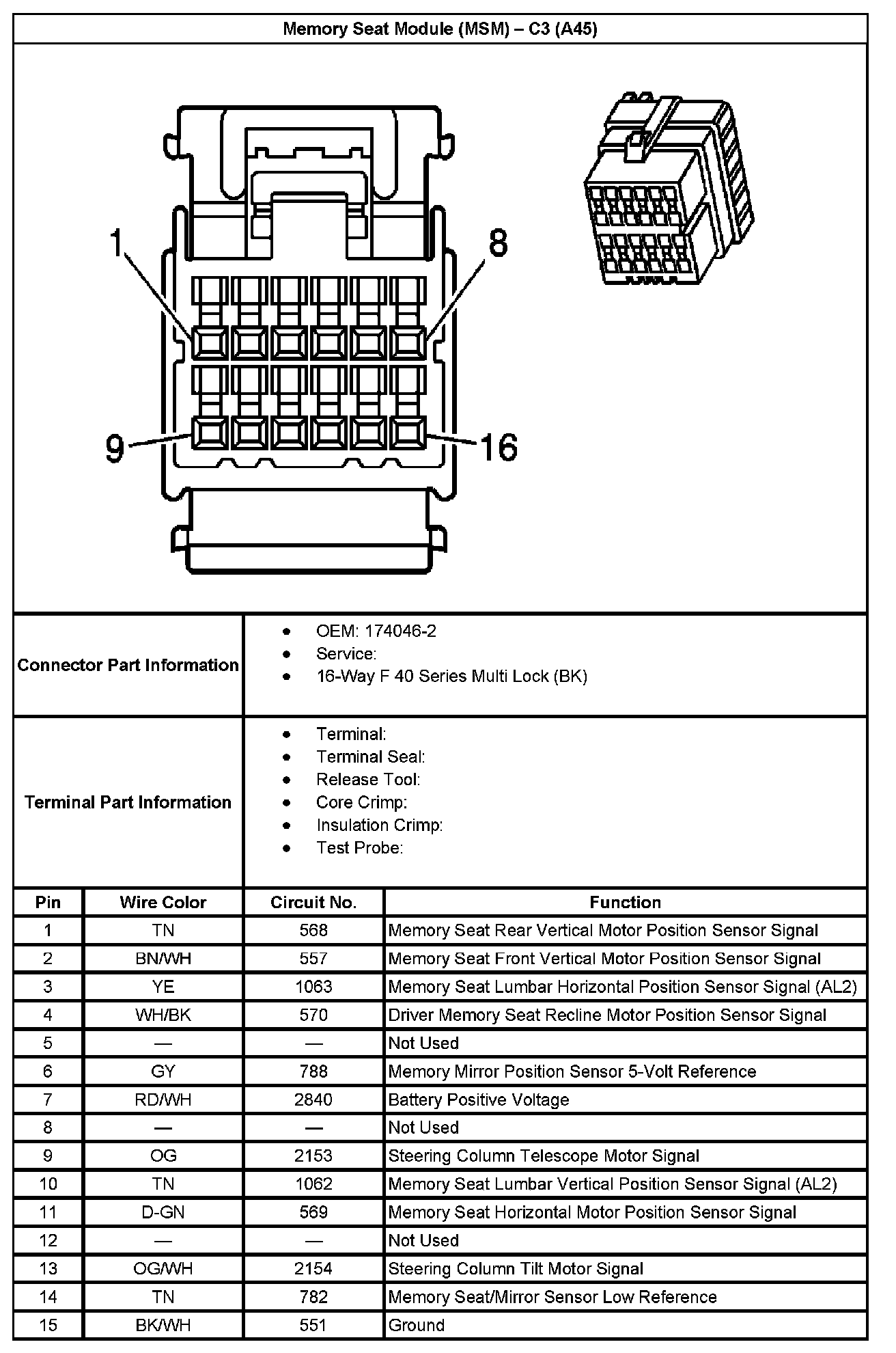 Memory Seat Module (MSM) - C3 (With RPO Code A45) Part 1: