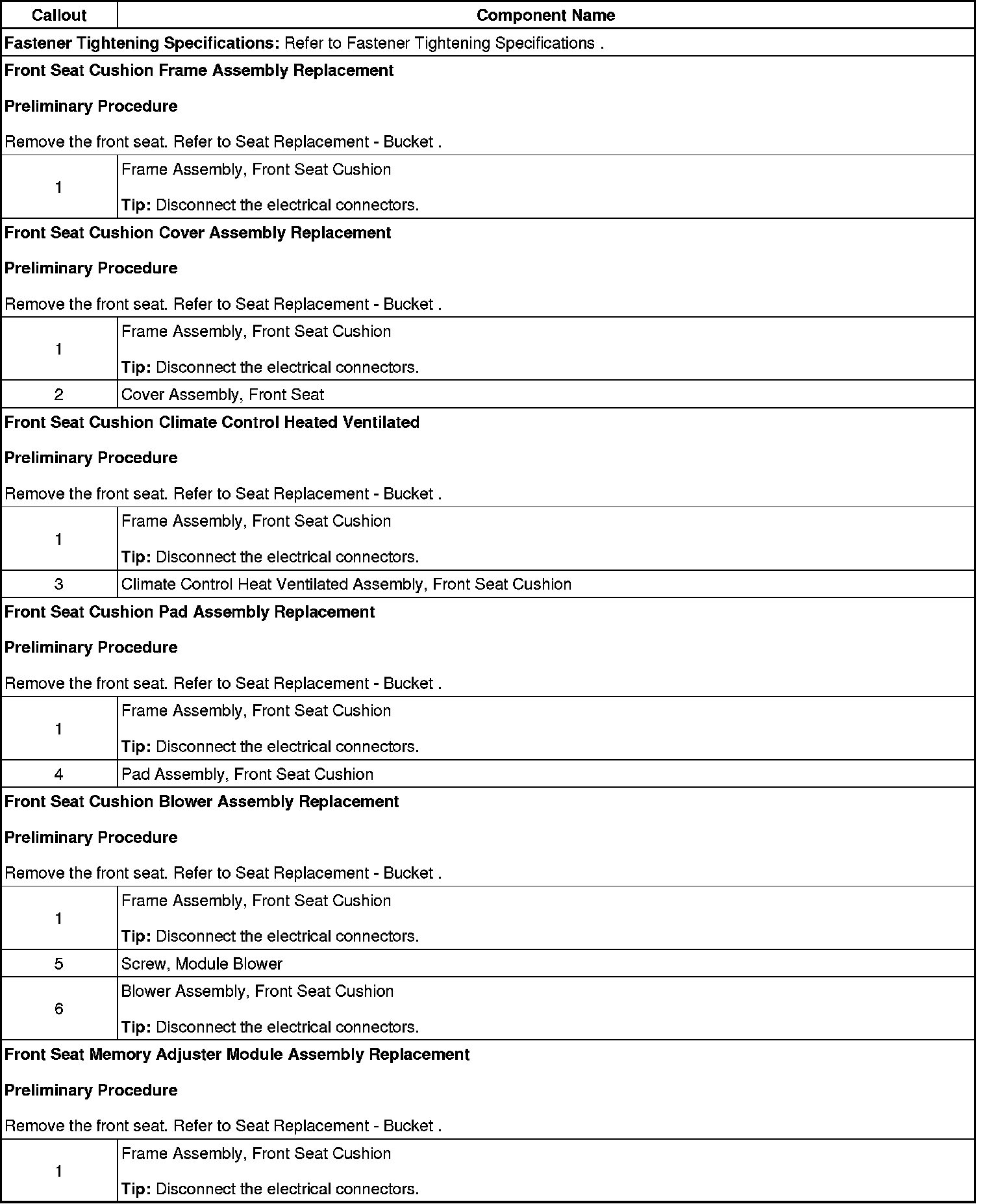 Frame, Trim Cover, Heater, Pad, Blower, Power Adjuster Control Module Replacement - Front Seat Cushion