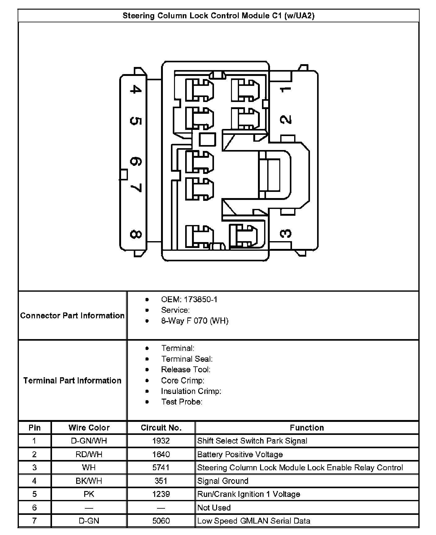 Steering Column Lock Control Module C2 (w/UA2):