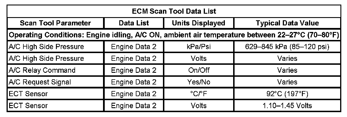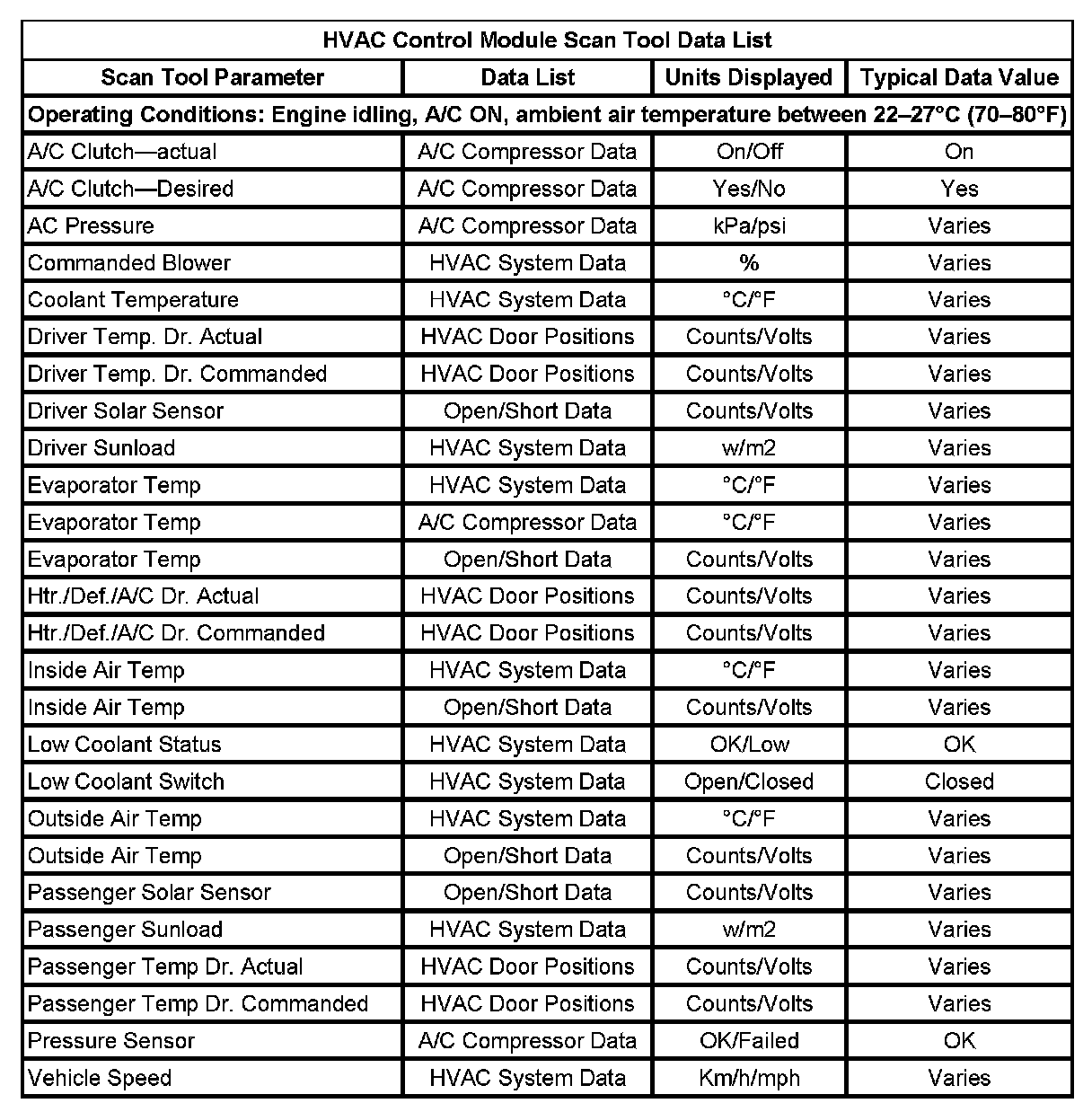 HVAC Control Module Scan Tool Data List: