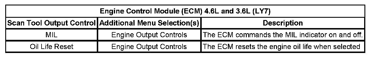 Scan Tool Output Controls - Engine Control Module (ECM)