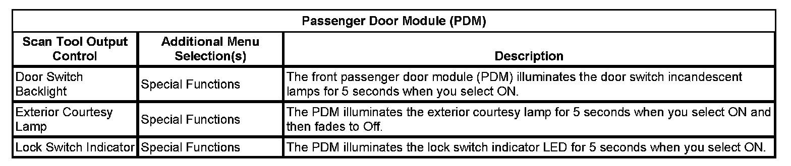 Scan Tool Output Controls - Passenger Door Module (PDM)