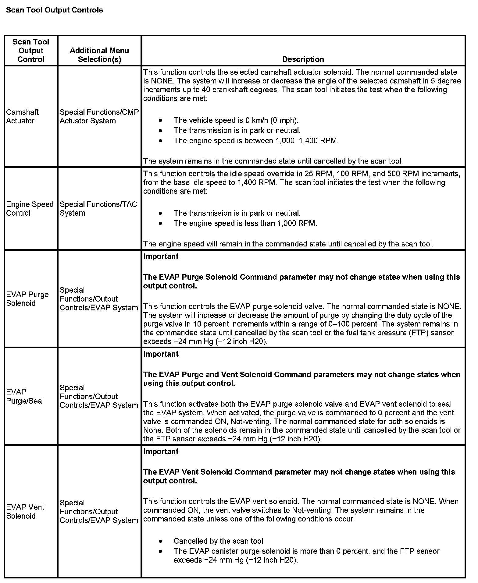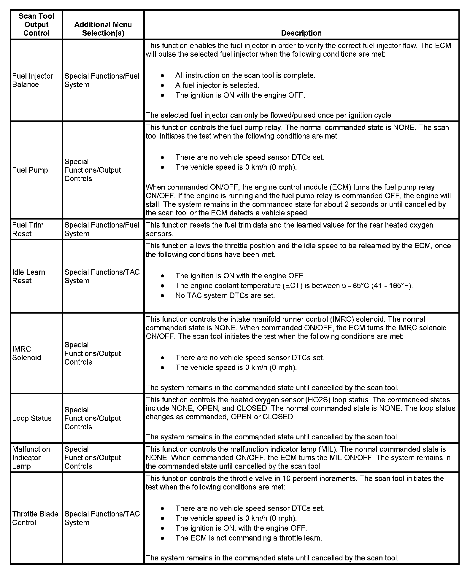 Scan Tool Output Controls