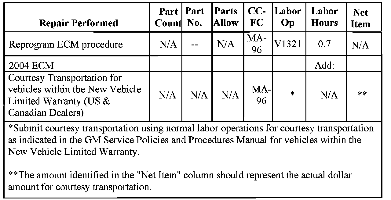 Do not attempt to order the calibration number from GMSPO. The calibration numbers are programmed into the ECM via a Techline Tech 2 scan tool with the calibration update from Techline Information System (TIS) 2000 with the calibration update. Use data version 2.75 or later, scheduled for broadcasting to dealers on February 27, 2005 (in Canada, March 3, 2005); and on TIS CD-ROM version 3.0 / 2005, scheduled for mailing to dealers beginning on March 14, 2005.