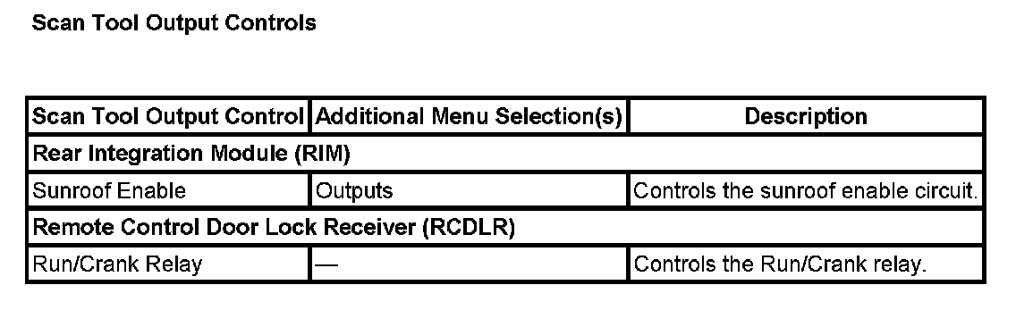 Scan Tool Output Controls:
