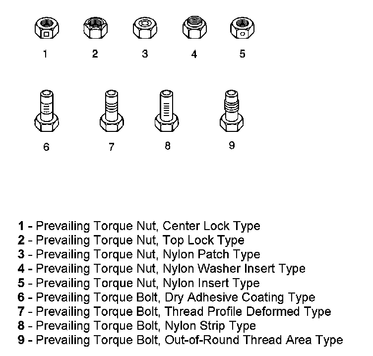 These fasteners accomplish the thread interface by the presence of a thread-locking compound on the fastener threads. Refer to the appropriate repair procedure in order to determine if the fastener may be reused and the applicable thread-locking compound to apply to the fastener.