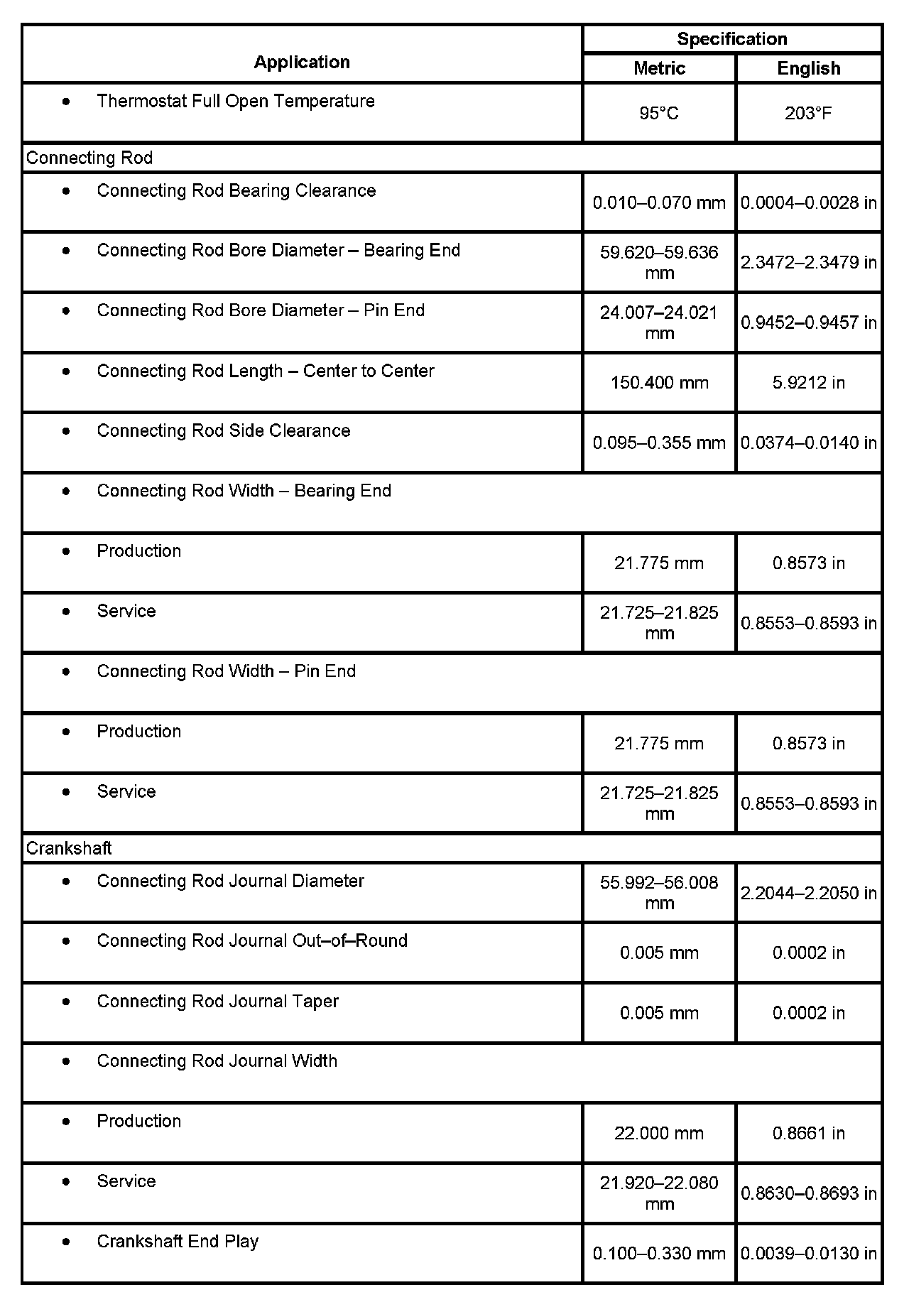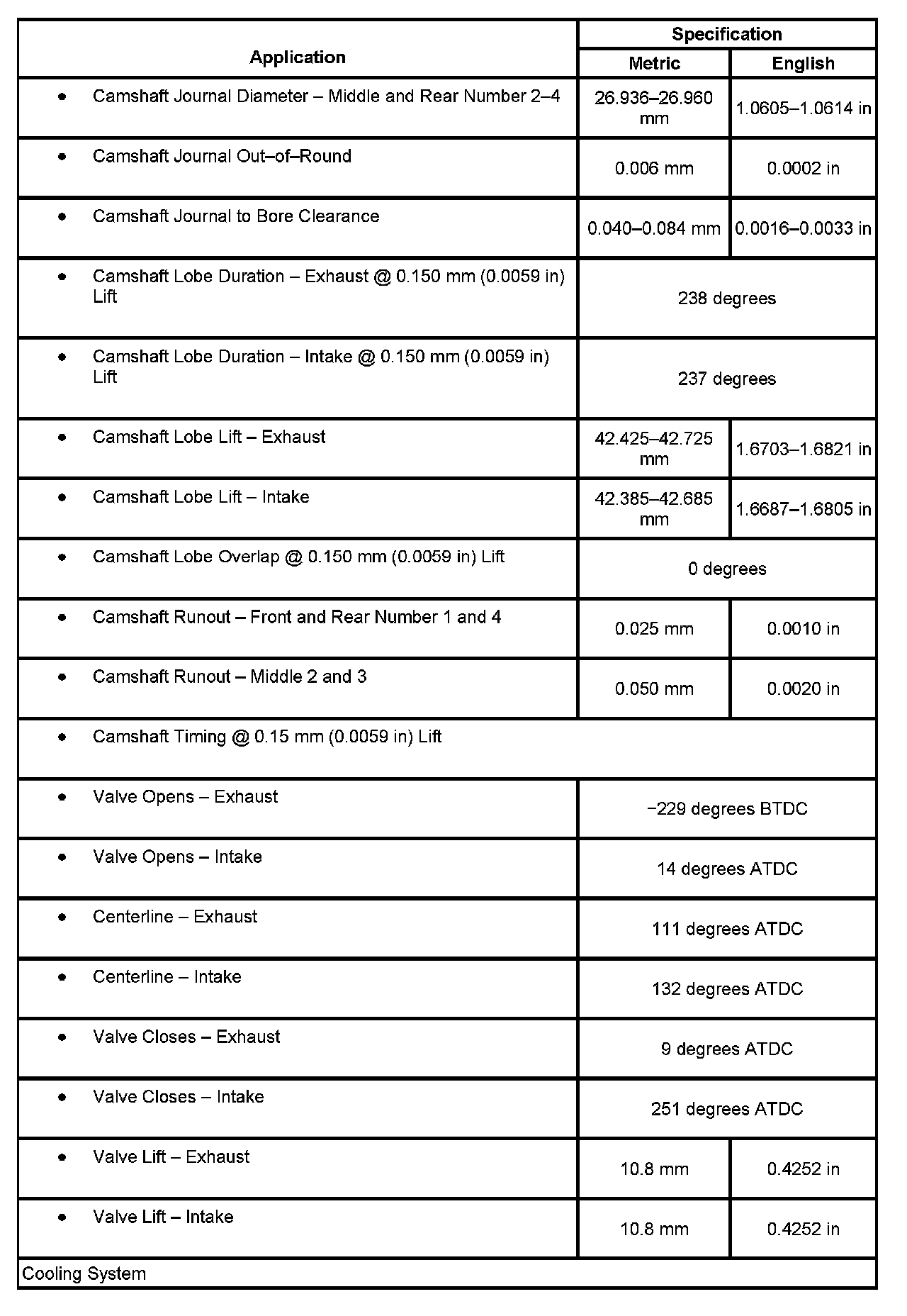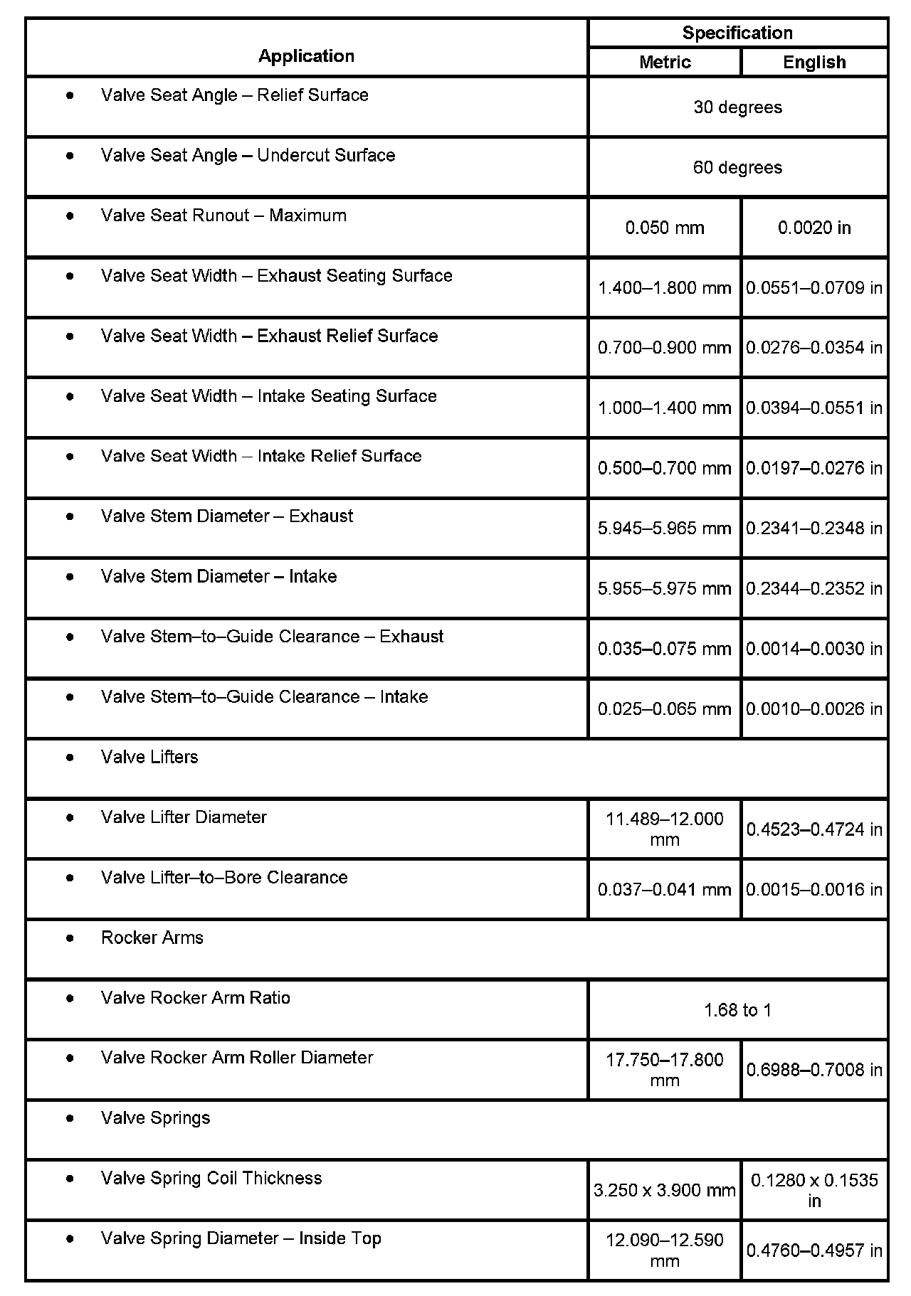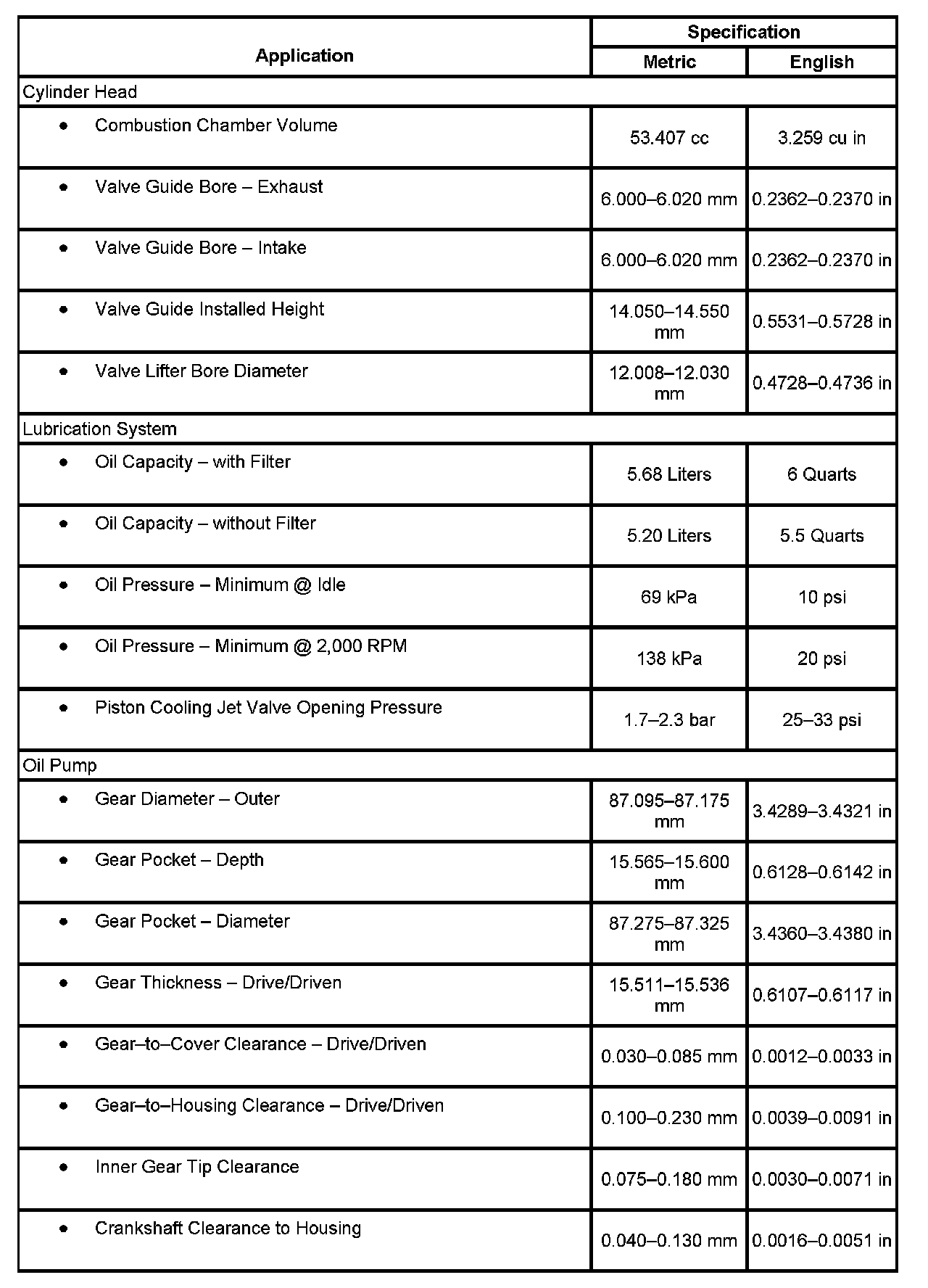 Engine Mechanical Specifications