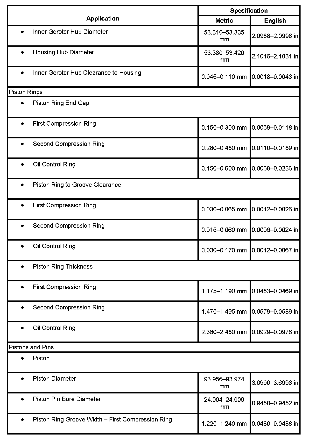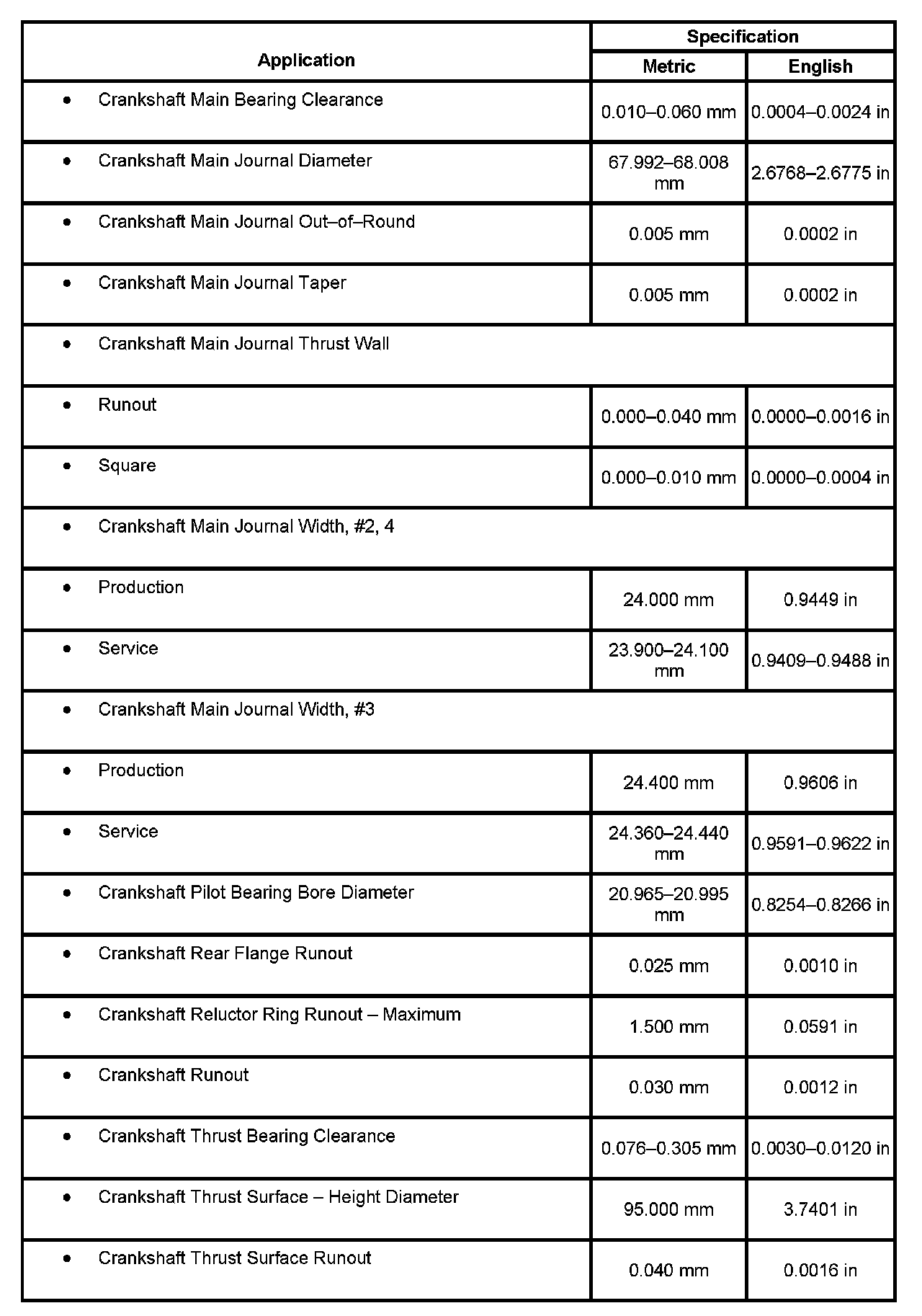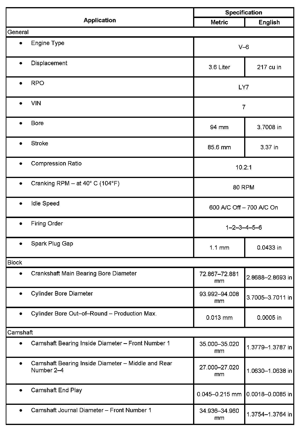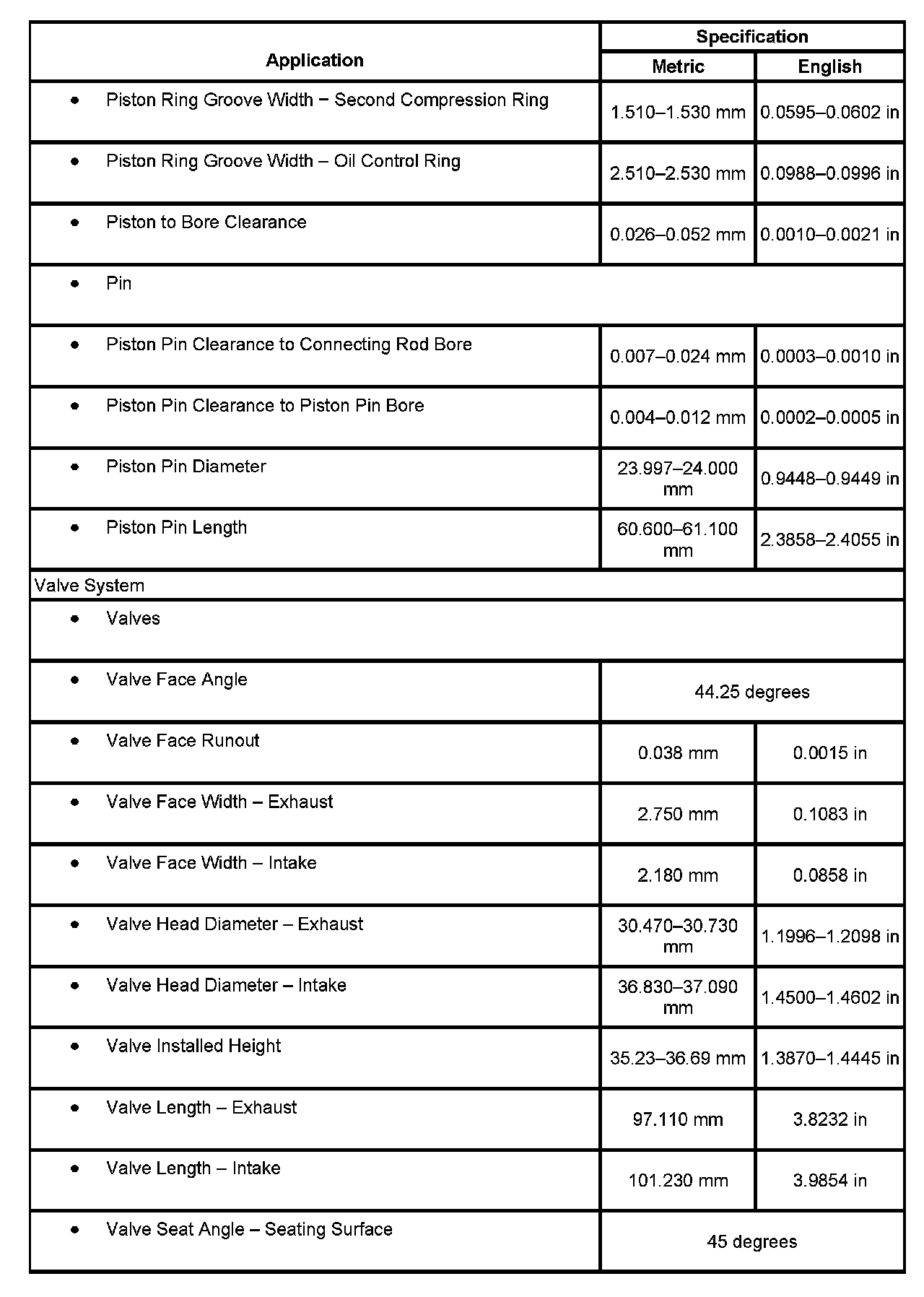 Engine Mechanical Specifications