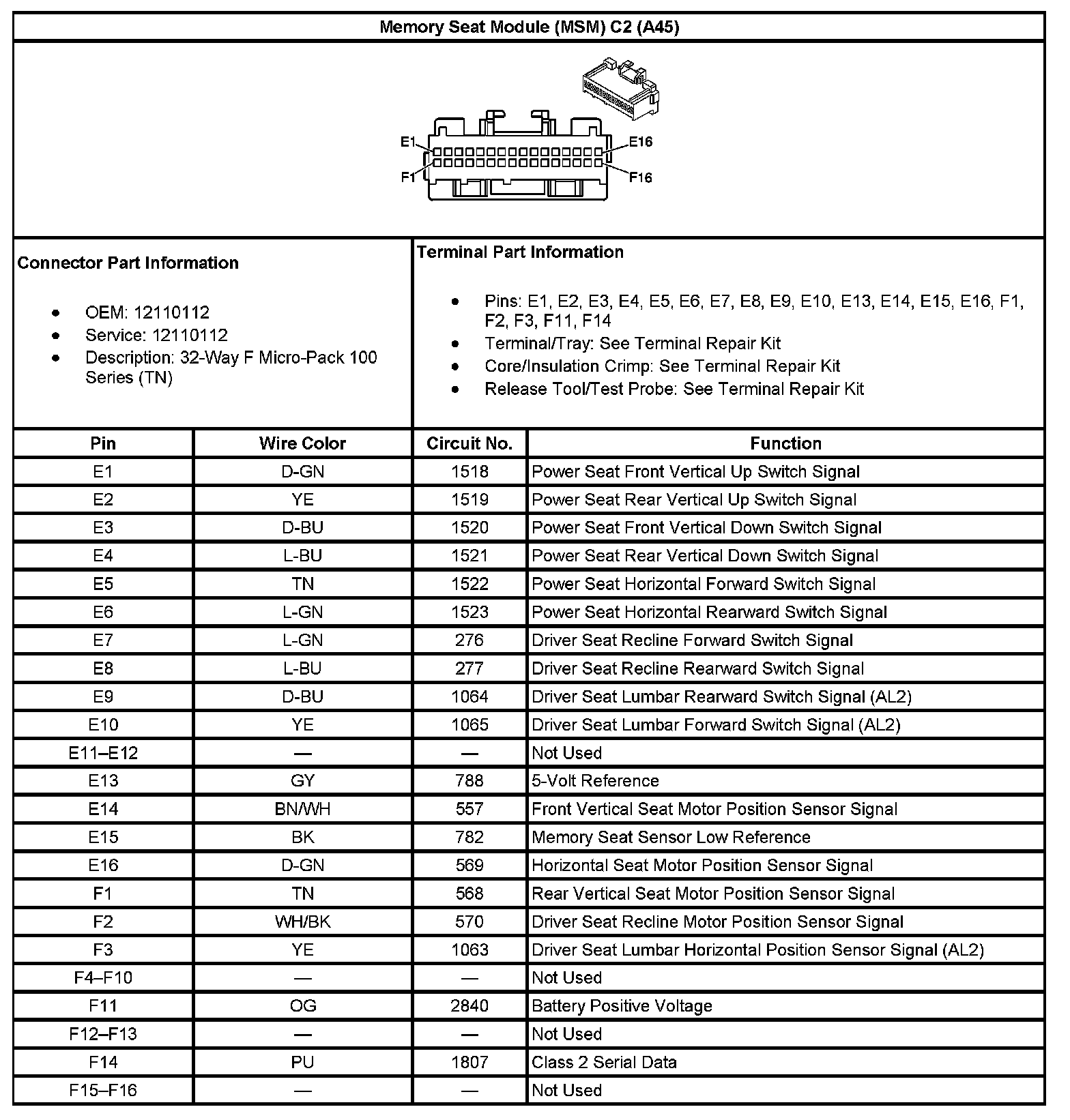 Memory Seat Module (MSM) C2 (With RPO Code A45):