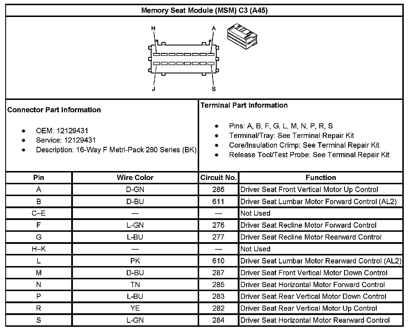 Memory Seat Module (MSM) C3 (With RPO Code A45):