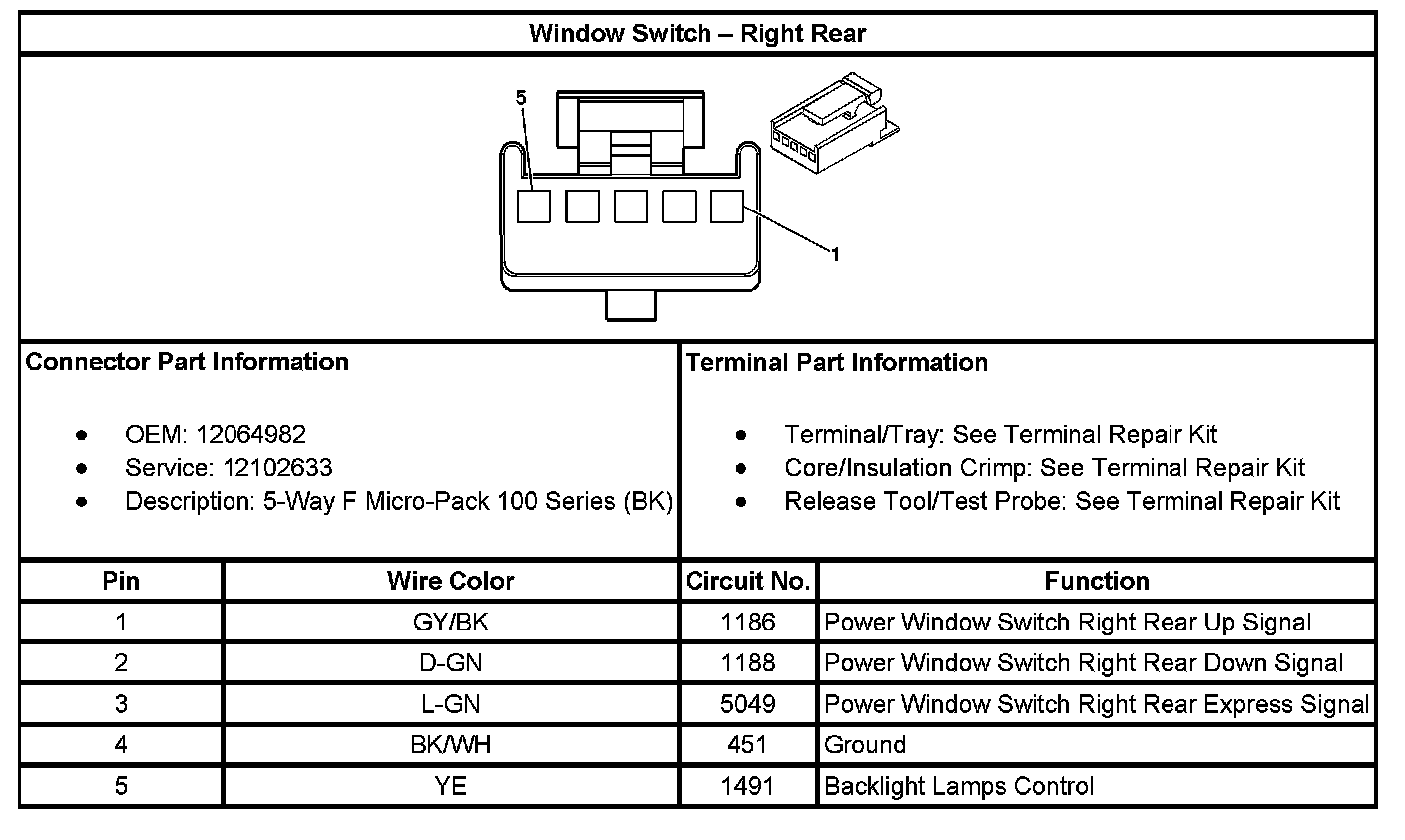 Window Switch - Right Rear: