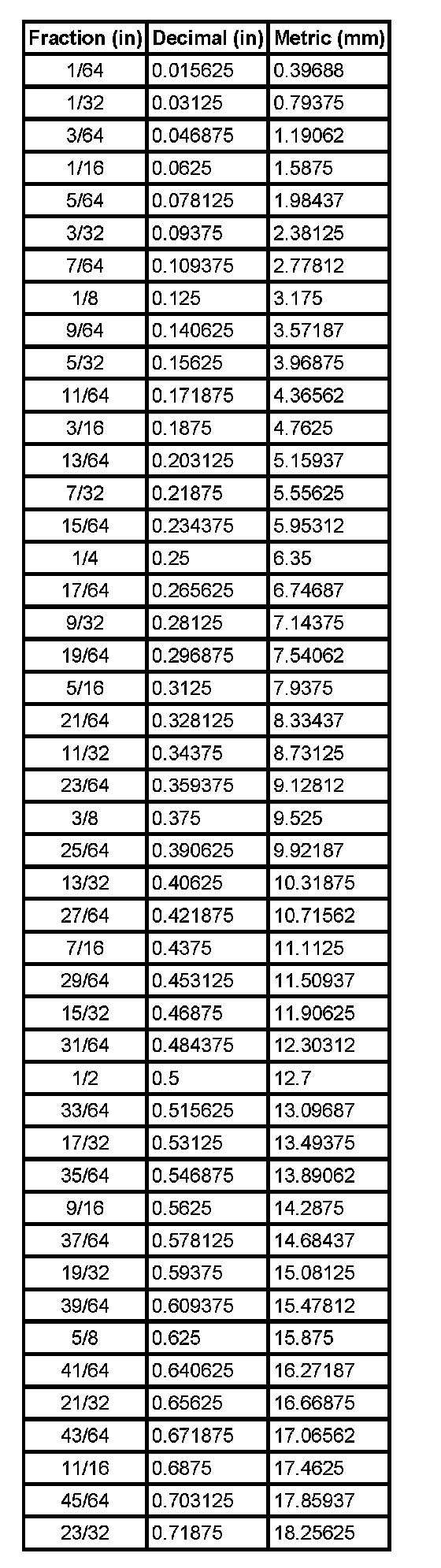 Decimal and Metric Equivalents